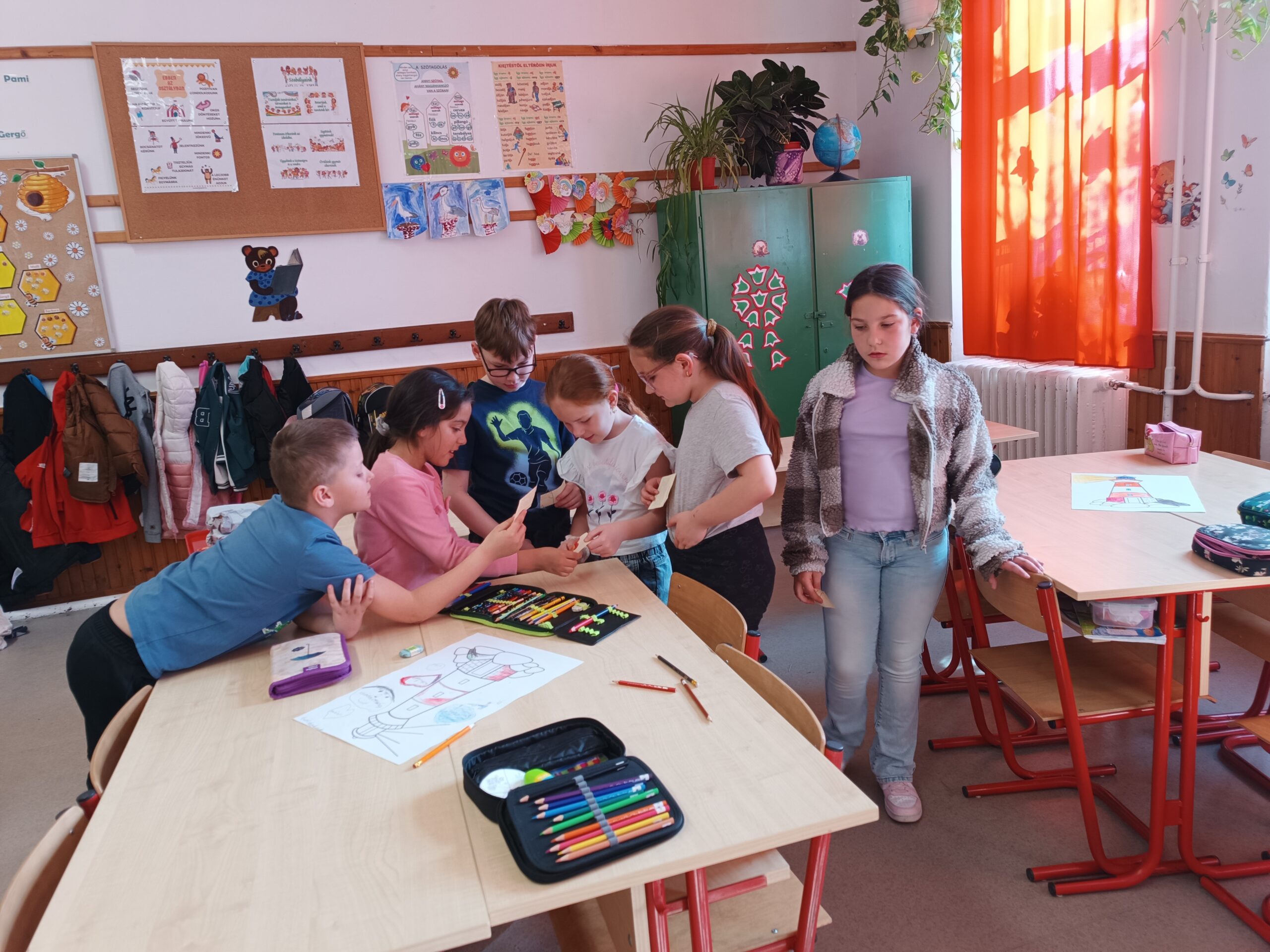 Apró örömök: Az órát relaxációval kezdtük. Ezután csoportokban dolgoztunk. Mindenki húzhatott egy kártyát, amire az örömökről és a kreativitásról voltak kérdések. Mindenki figyelt a másikra. Nagyon tetszett nekik, amikor színekkel, hangokkal kellett kifejezni az érzéseiket. Utána csereberéltük a kártyákat. Így már másik kérdés került hozzájuk. Jó volt figyelni, hogy nem egymás szavait ismételgették.