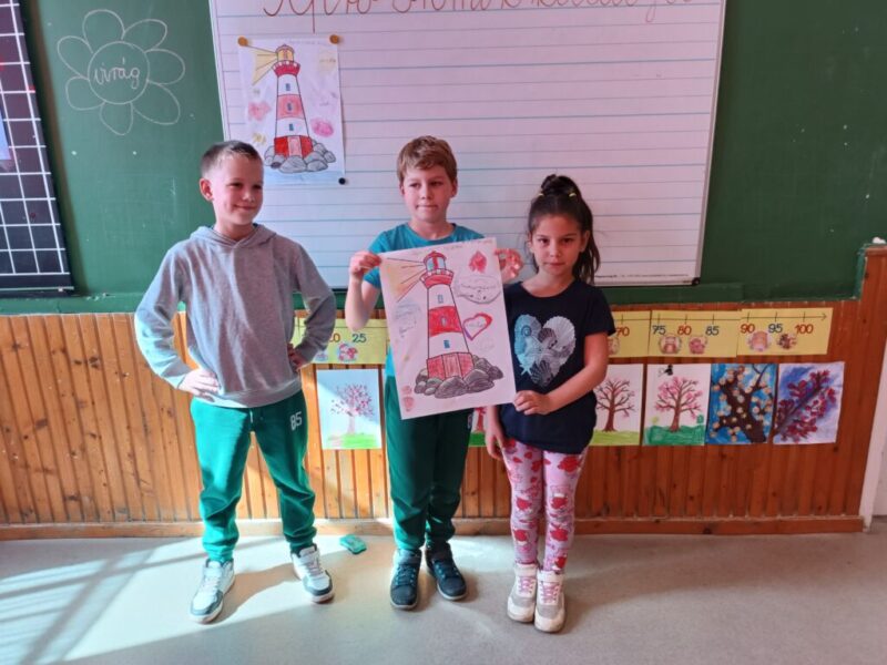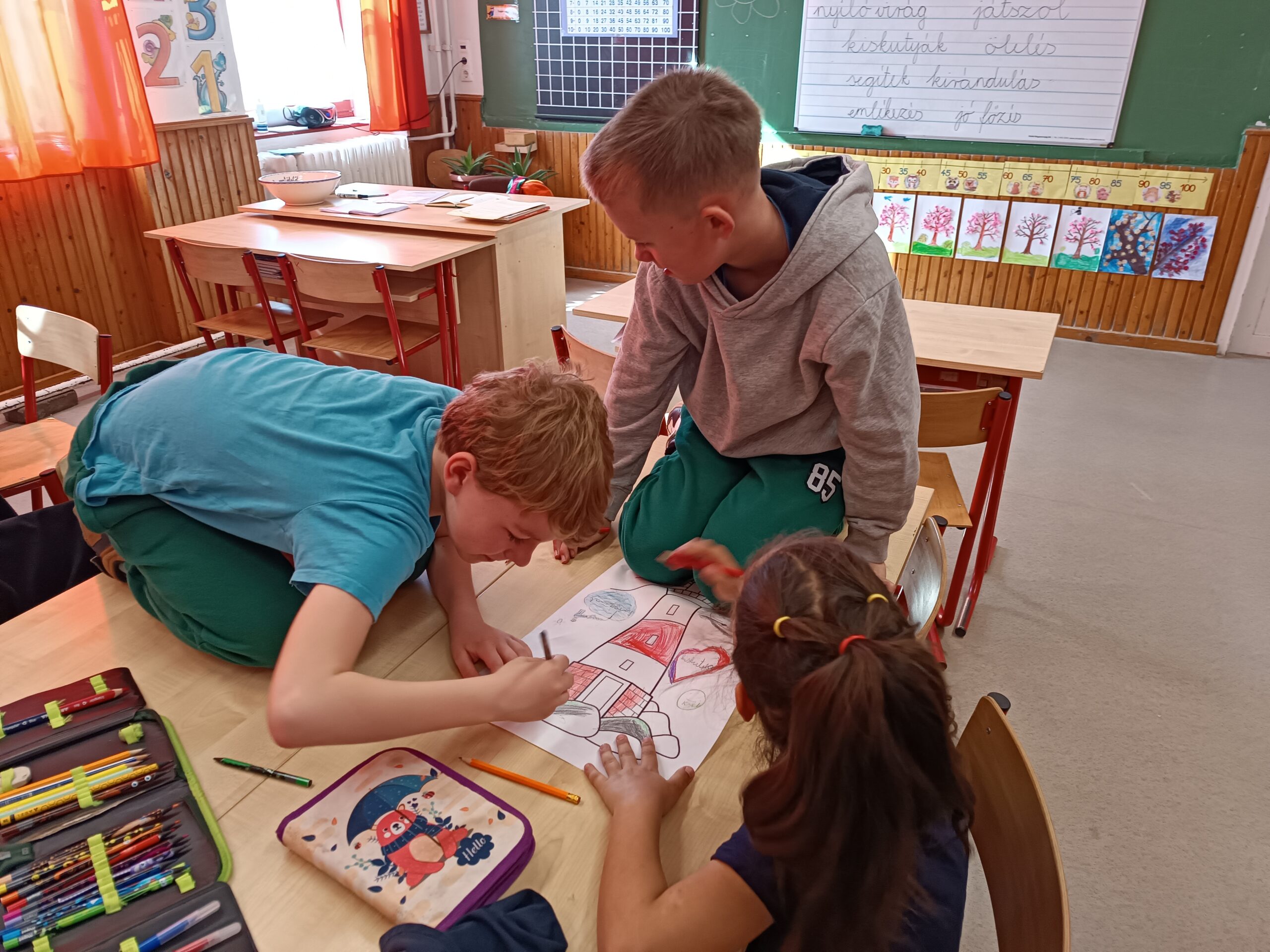 Elérkeztünk az „Apró örömök tornyához”. Itt csoportmunkában színezték ki a tornyot, majd körbevették olyan kifejezésekkel, mely örömöt okoz nekik.