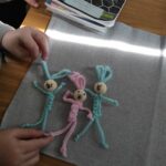 Egy másik technikával is megismerkedtünk, melyhez szintén fonalat használtunk: a makramé készítésével. Kedves nyuszikat barkácsoltunk, amit felajánlottunk az iskolai húsvéti vásárra.