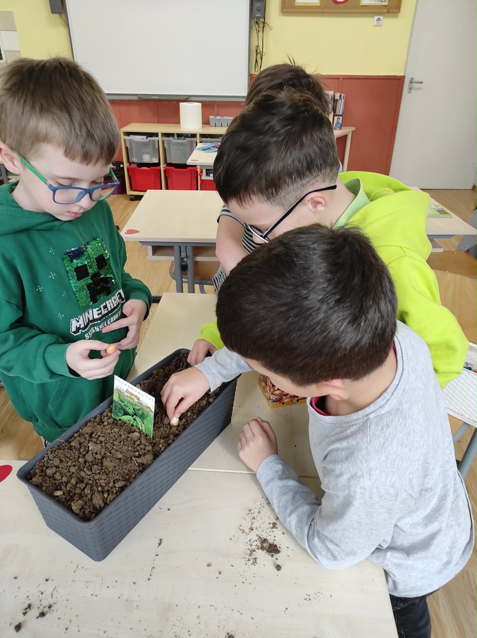 Hagymaprojektet indítottunk, az előkészített földbe hagymát ültettek a gyerekek, amit sikeresen életben tartottunk és felneveltünk, a mai napon pedig kiszedtük és el is fogyasztottuk. A gyerekek szerint ez sokkal finomabb, mint a boltban kapható hagyma. Hát persze, hiszen benne él a törődés, a figyelem, a tapasztalat, amit az elmúlt bő egy hónap adott.