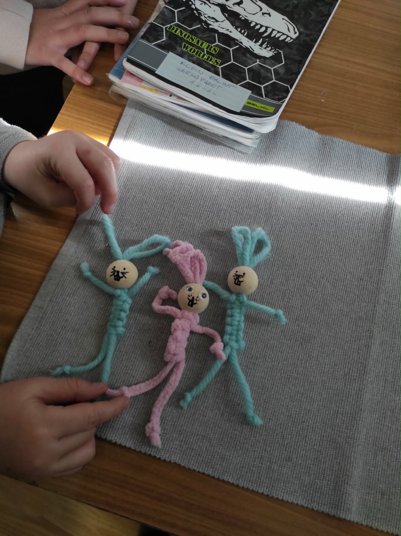 Egy másik technikával is megismerkedtünk, melyhez szintén fonalat használtunk: a makramé készítésével. Kedves nyuszikat barkácsoltunk, amit felajánlottunk az iskolai húsvéti vásárra.