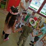 A mese után beszélgettünk, felkeltette az érdeklődésüket a történet, többen vissza tudták idézni a kérdések alapján. A témát korona készítéssel vittük tovább, illetve zártuk le. Az elkészült koronákkal maguk kezdeményeztek dalos játékokat, így kihasználtam a lehetőséget a spontán játékokra.
