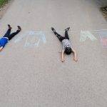 Az online tanulás alatt mi folytattuk közös boldogságforrásainkat. Az aszfaltrajzverseny jó móka volt, mert beleélhettük magunkat. Lehettünk lepkék, virágok, szárítókötélen lógó ruhadarabok, horgászok. Mindenki nyertese volt a játéknak. Boldog nap volt.