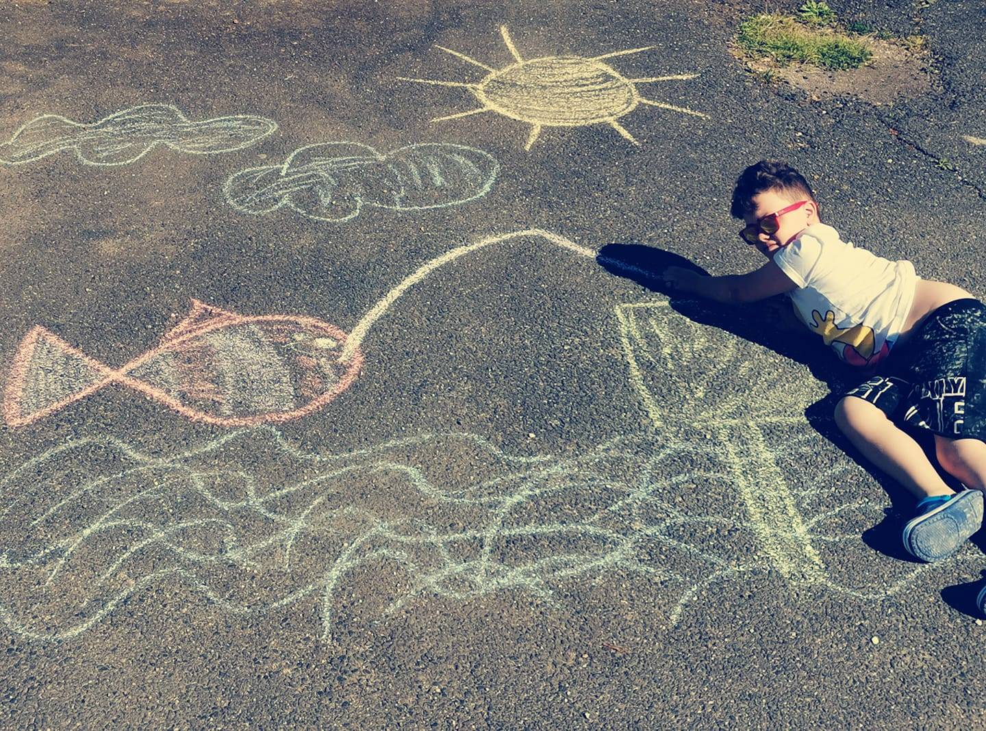 Aszfaltrajz-verseny, aminek aktív részese a gyermek – otthonról