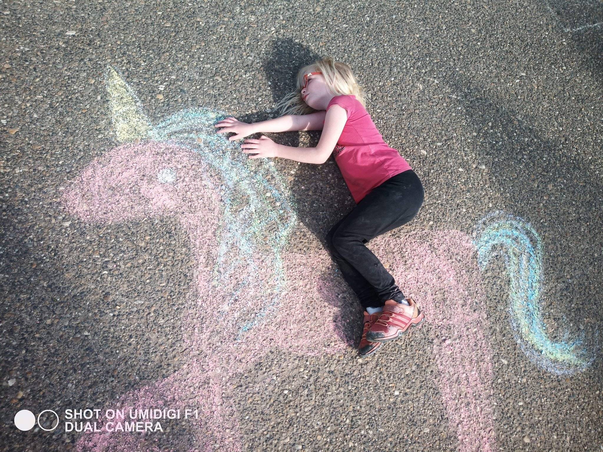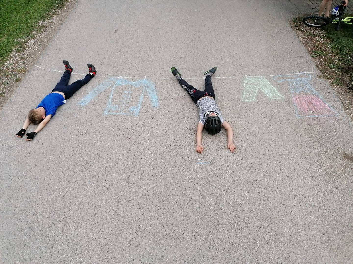 Az online tanulás alatt mi folytattuk közös boldogságforrásainkat. Az aszfaltrajzverseny jó móka volt, mert beleélhettük magunkat. Lehettünk lepkék, virágok, szárítókötélen lógó ruhadarabok, horgászok. Mindenki nyertese volt a játéknak. Boldog nap volt.