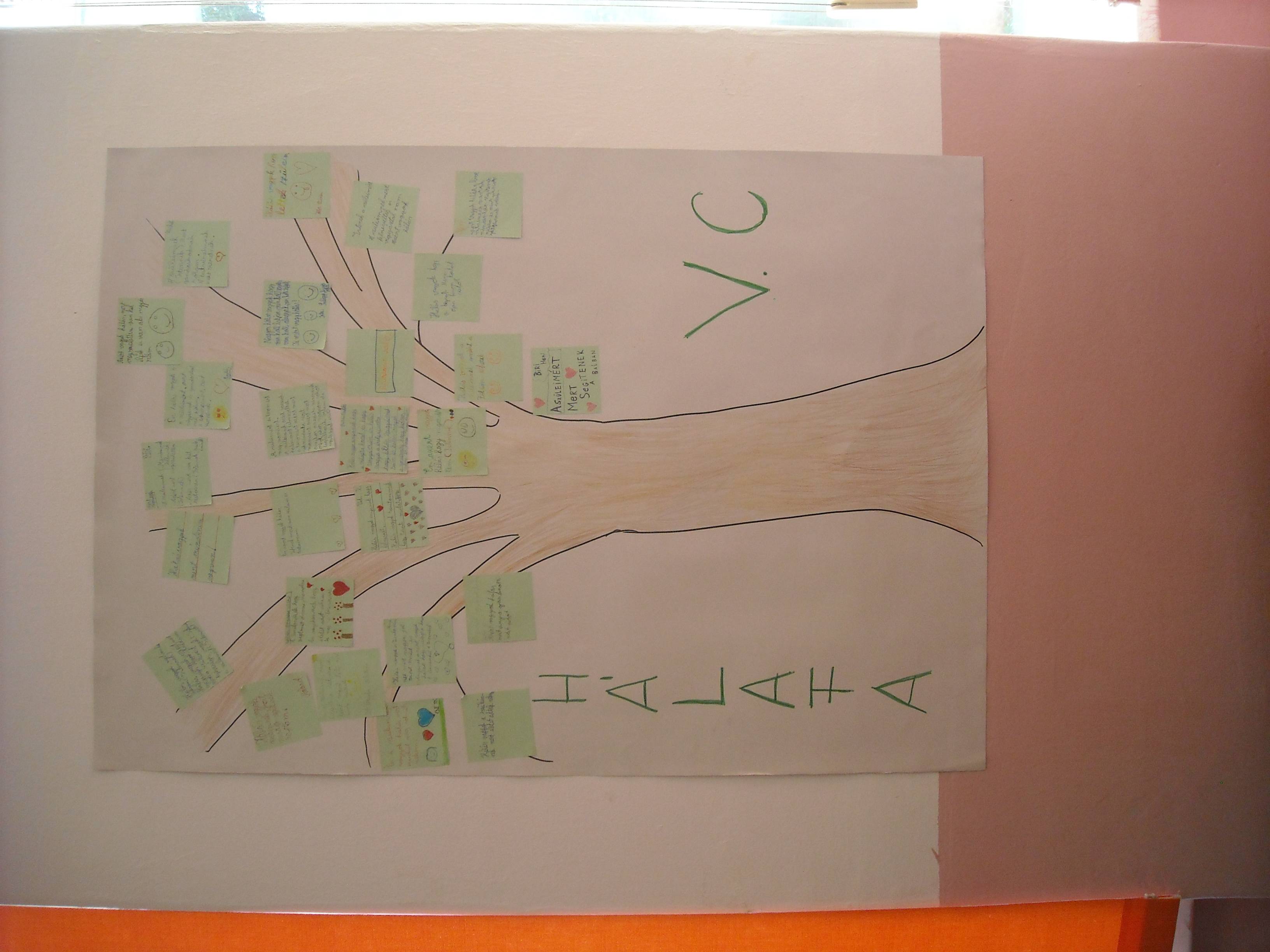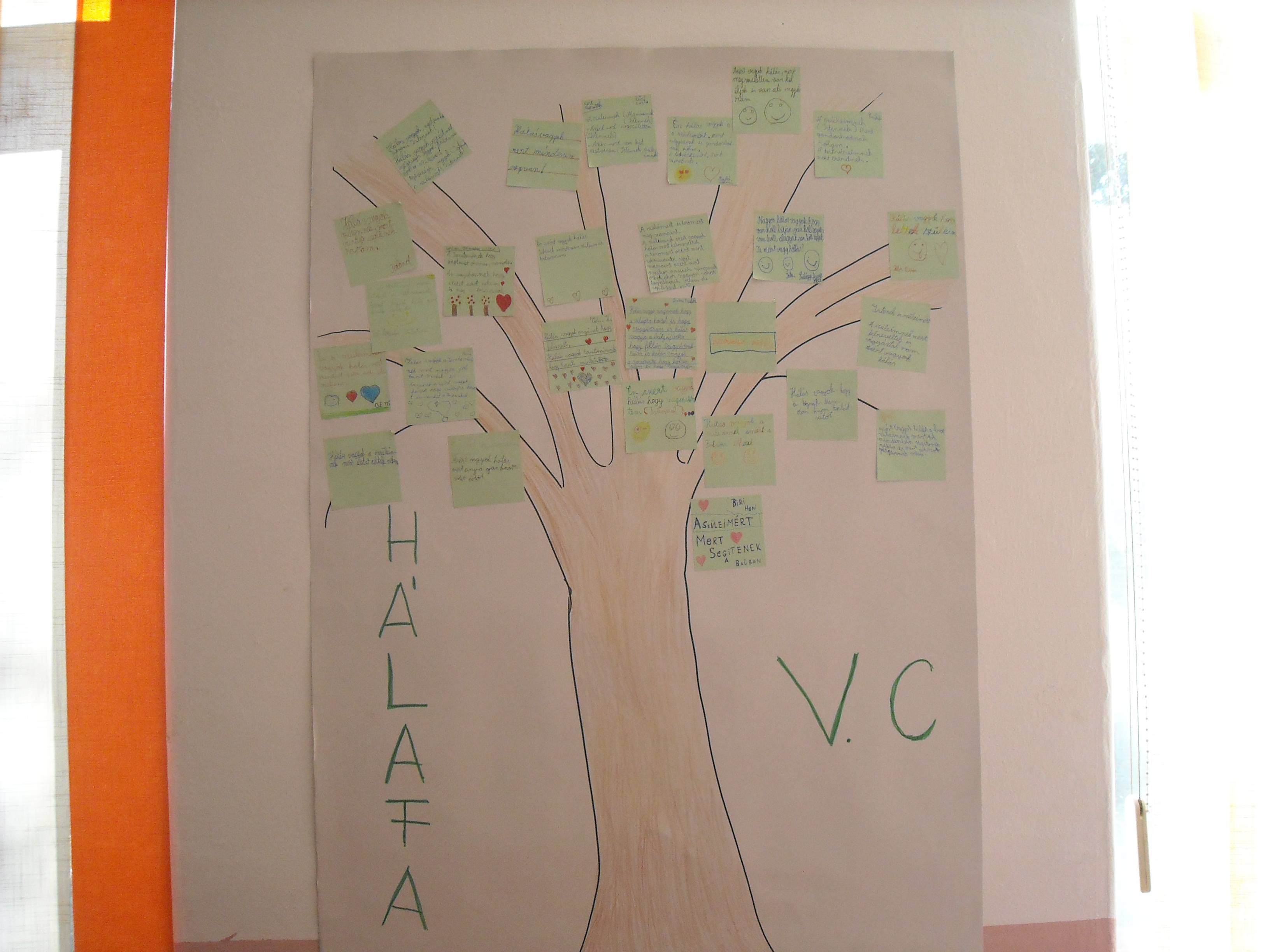 A diákok a háláról való beszélgetések alatt szépen megnyíltak egymás előtt is, segített a gyermekek megismerésében, önismeretében is. Elolvastuk a pohár tejről szóló történetet, majd a gyermekek egy tízes listát készítettek arról, hogy kinek és miért hálásak. Ma elkészült az osztály hálafája is. Kiragasztottuk az osztály falára.