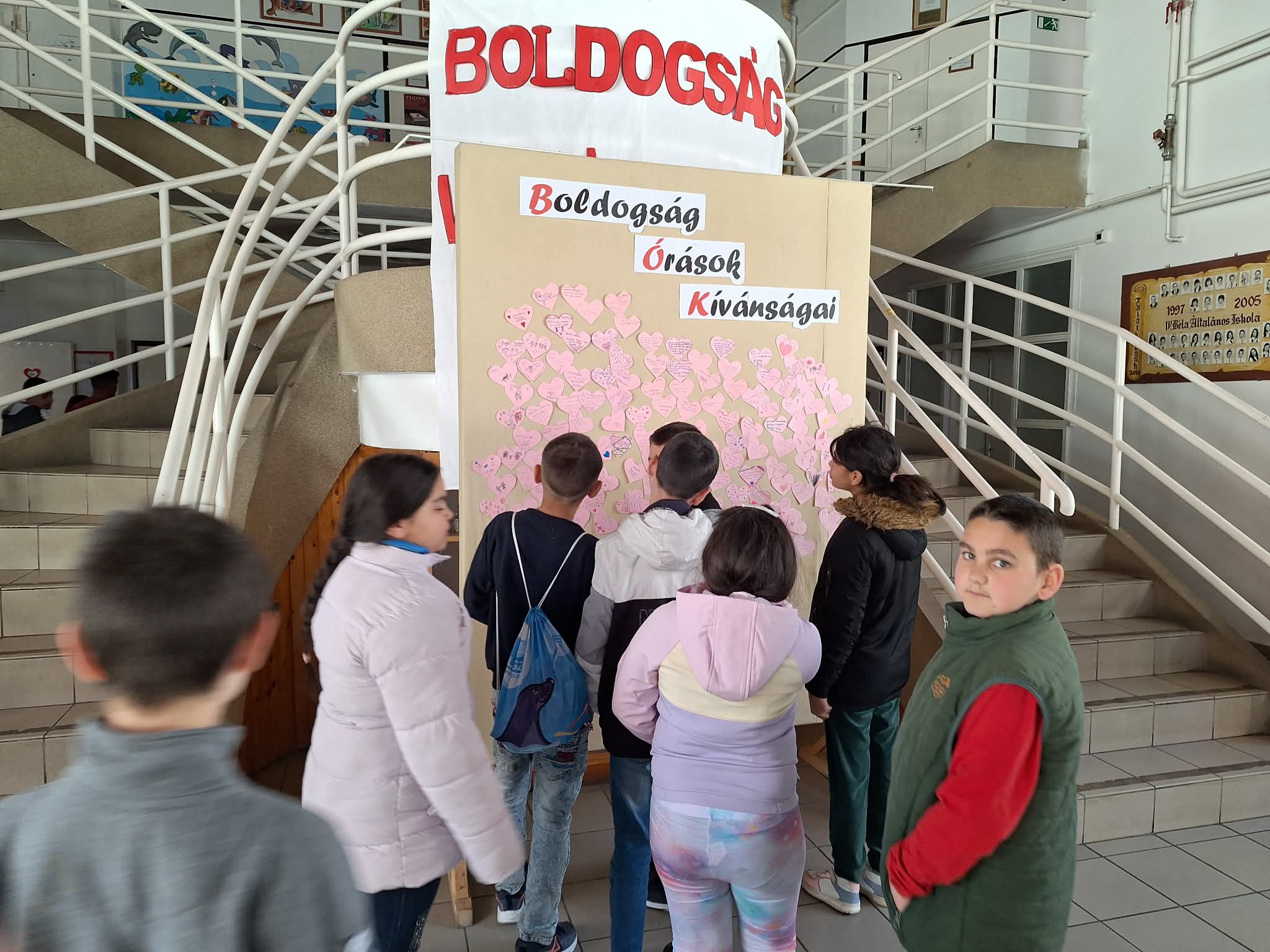 Fontos feladataink voltak a Boldogság világnapja alkalmából: létrehoztuk a BÓK falat, ahol jókívánságainkhoz végül az iskola összes tanulója csatlakozott.