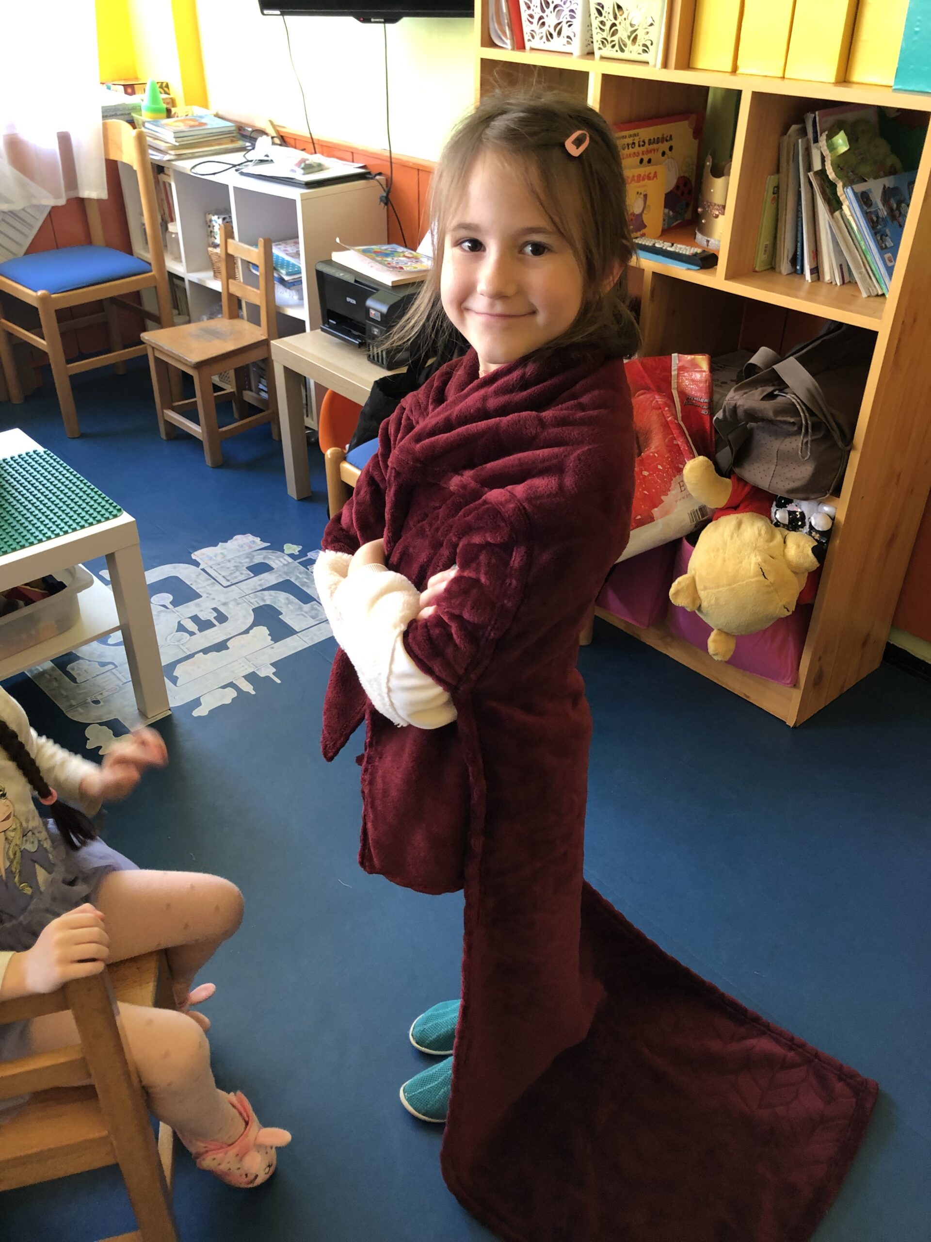 A mese felidézését követően felajánlottam a dramatizálás lehetőségét, amit nagy lelkesedéssel fogadtak. A lányok közül választottunk királykisasszonyt, a többiek udvarhölgyek lettek, míg a fiúk játszották végig a próbatételeket. A dramatikus elemeket tudatosan bővítettem fejlesztő feladatokkal.