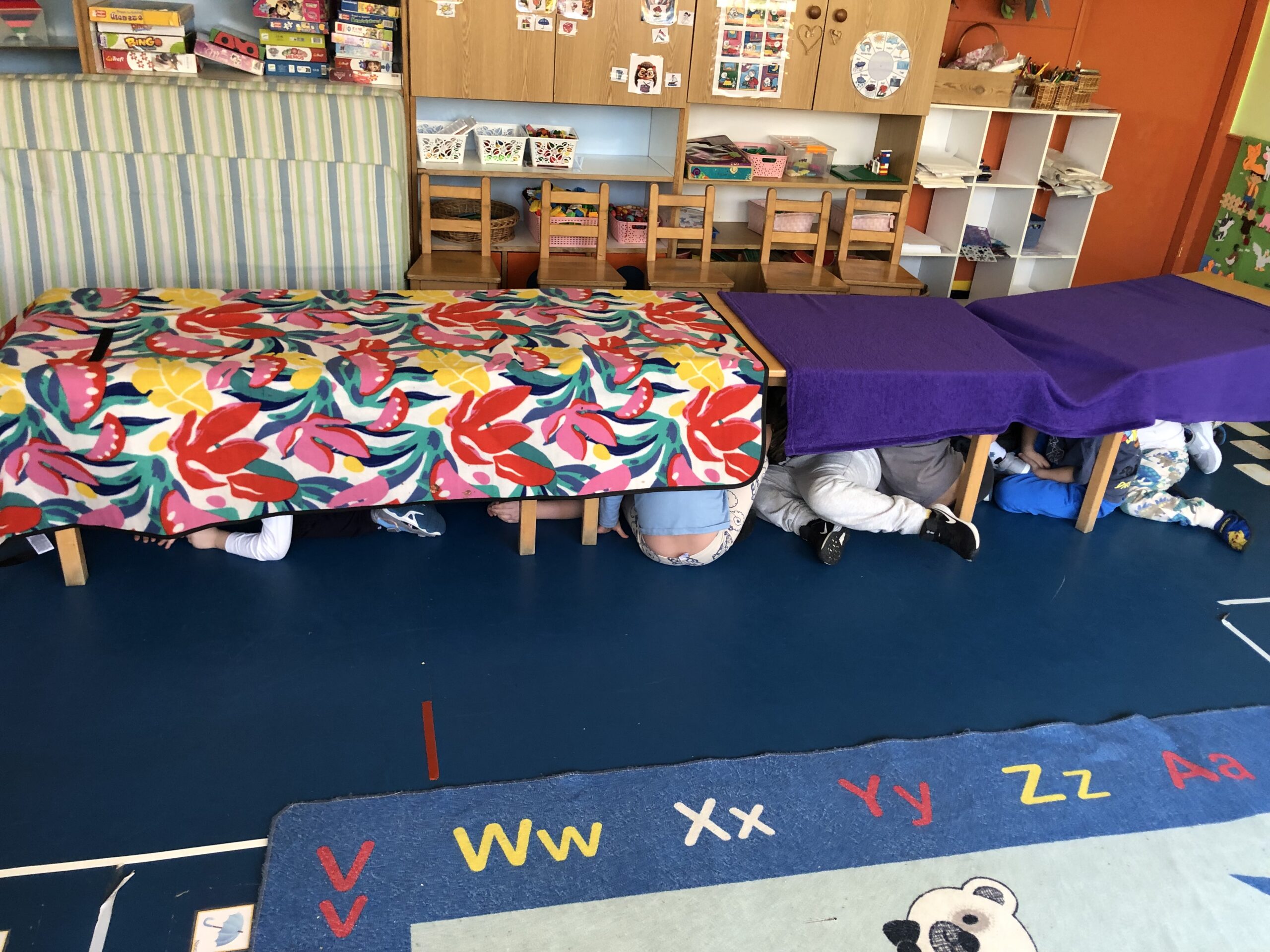 A második próba során a „hegy gyomrába” bújtak (asztalok alá), ahonnan egyenként jöttek elő, és számképeket, dominóképeket, illetve ujjal mutatott mennyiségeket kellett felismerniük. Itt tudatosan alkalmaztam differenciálást: a kisebbek 1–5-ig terjedő mennyiségekkel, a nagyobbak összetettebb számképekkel dolgoztak. Minden gyermek sikerélményhez jutott. A dramatikus környezet rendkívül motiválóan hatott, a „hegy gyomrába” való elbújást különösen élvezték.
