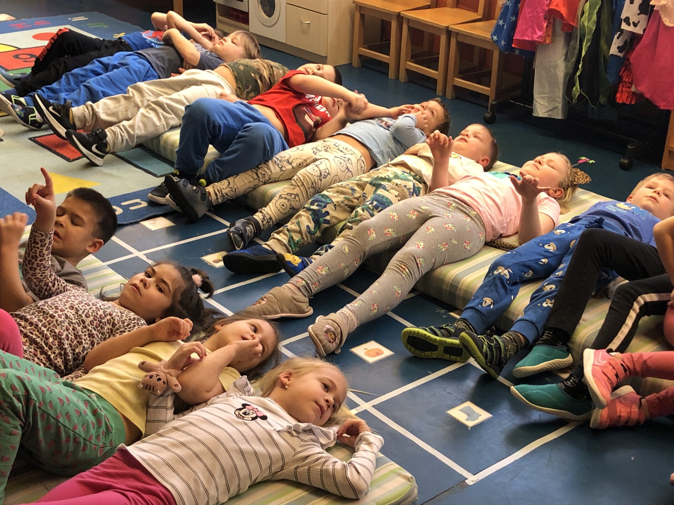A foglalkozás végén relaxációs zenével és Bagdi Bella dalával zártunk, amely segített a lecsendesedésben.