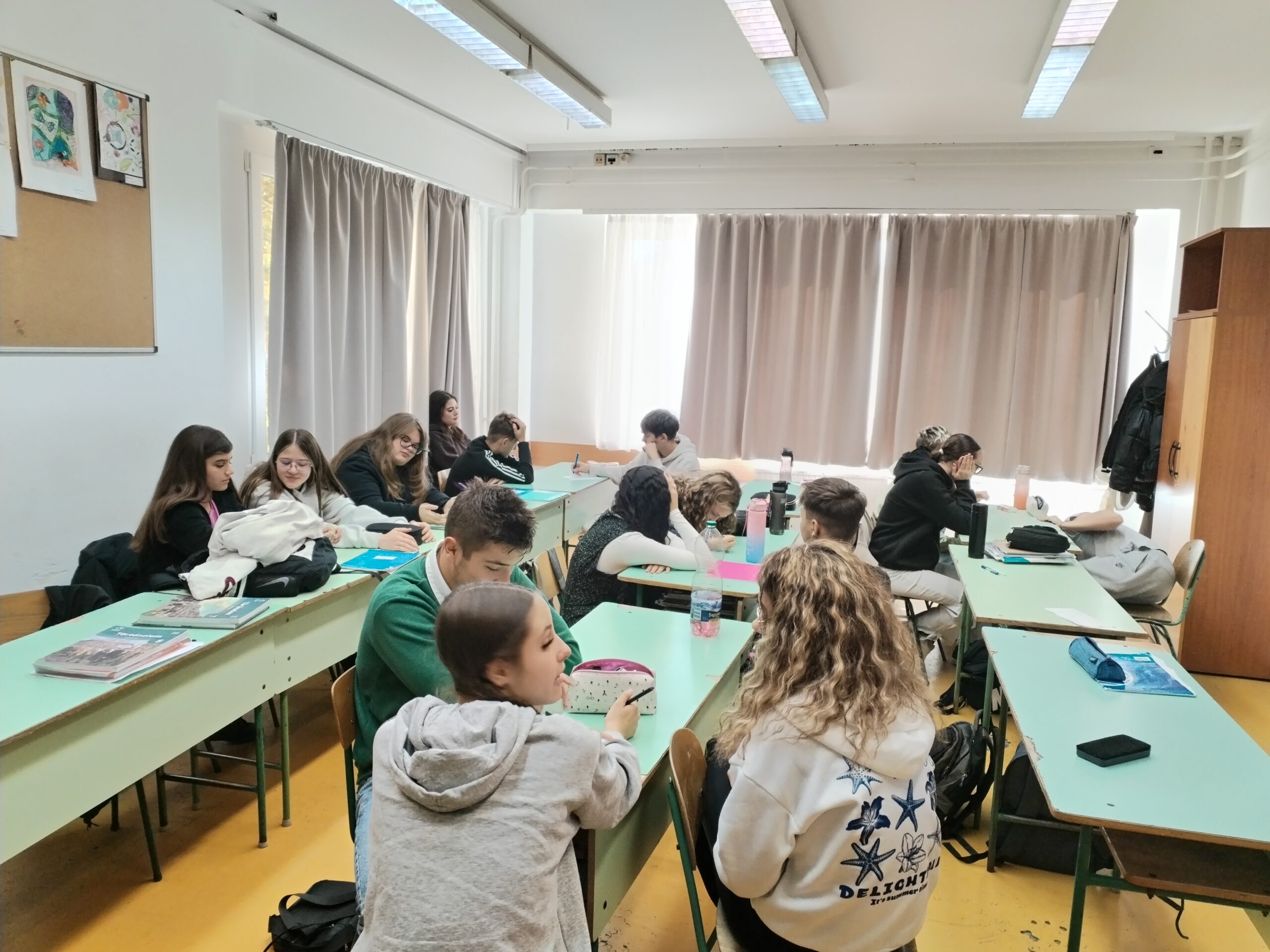 Először a gyerekek felsorakoztak a terem két vége közötti képzeletbeli 1-10-es skálán annak megfelelően, hogy hogyan érzik magukat most, ha visszatekintenek a hetükre. Aztán megosztás következett. A gyerekek őszintén megnyíltak örömeikről, bánataikról és érdeklődve hallgatták a rövid indoklásokat.