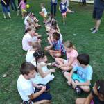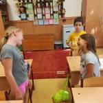 Csapatépítő játékokat játszottunk, ahol láncban kellett gesztenyét, plüssöt eljuttatni a sor végére, és megbeszéltük, hogy mitől voltak hatékonyak a csapataink: Azért, mert együtt dolgoztunk, és a sok kis kéz szorgosan segítette egymást.