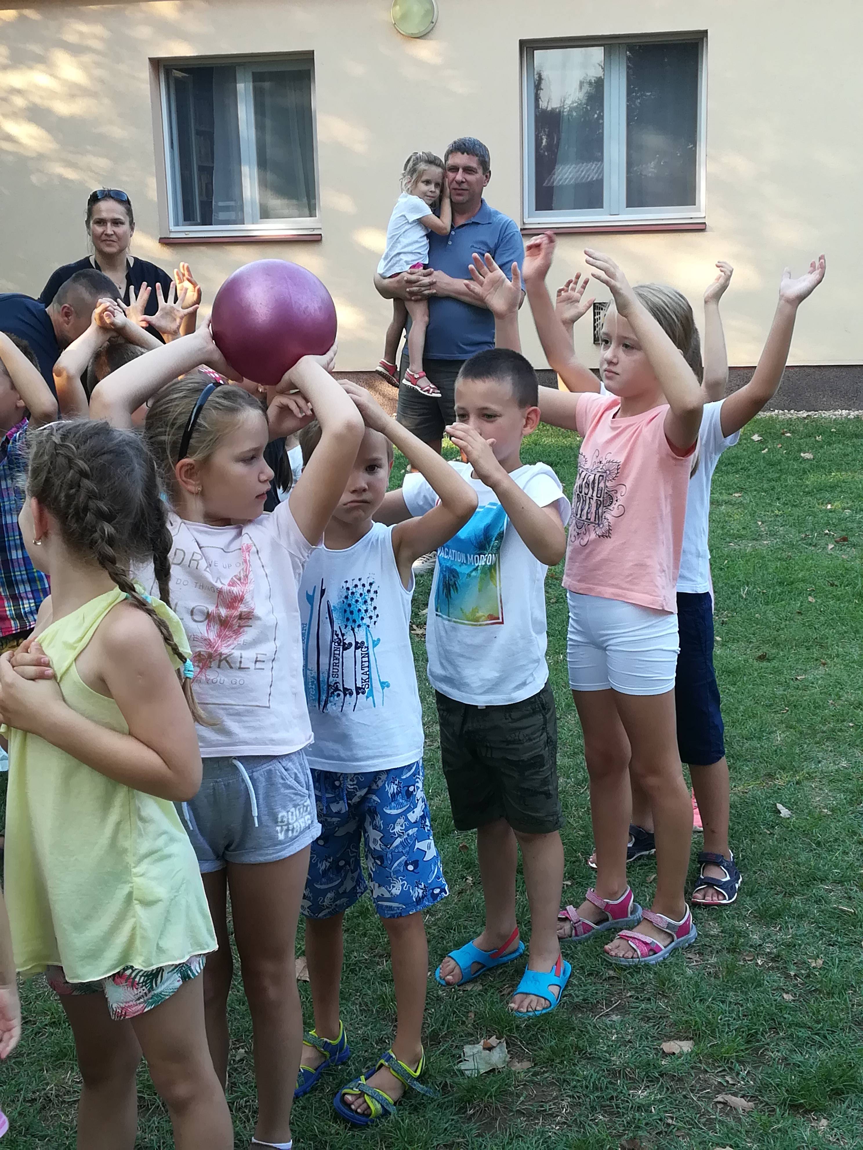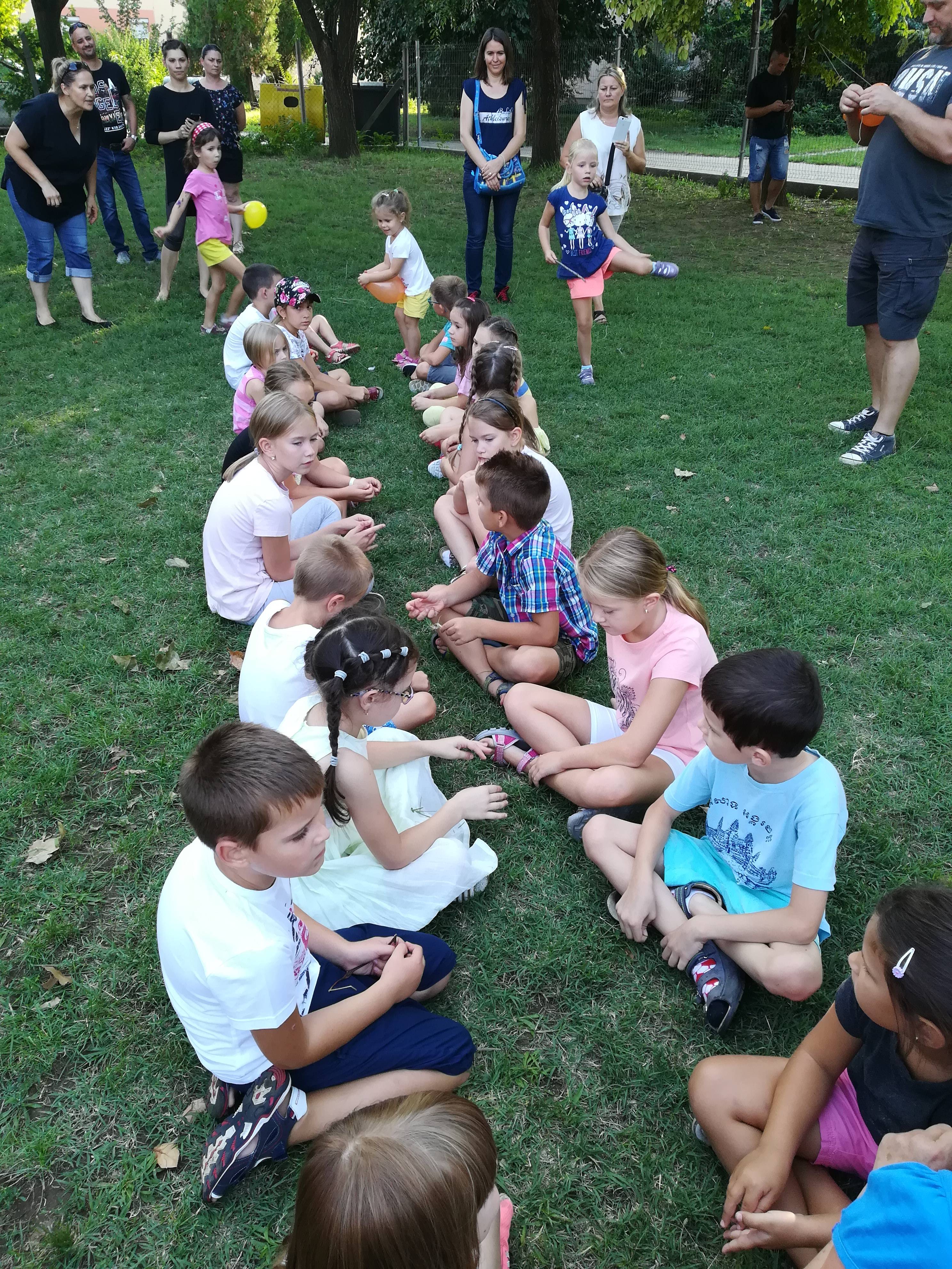 Csapatépítő játékokat játszottunk, ahol láncban kellett gesztenyét, plüssöt eljuttatni a sor végére, és megbeszéltük, hogy mitől voltak hatékonyak a csapataink: Azért, mert együtt dolgoztunk, és a sok kis kéz szorgosan segítette egymást.