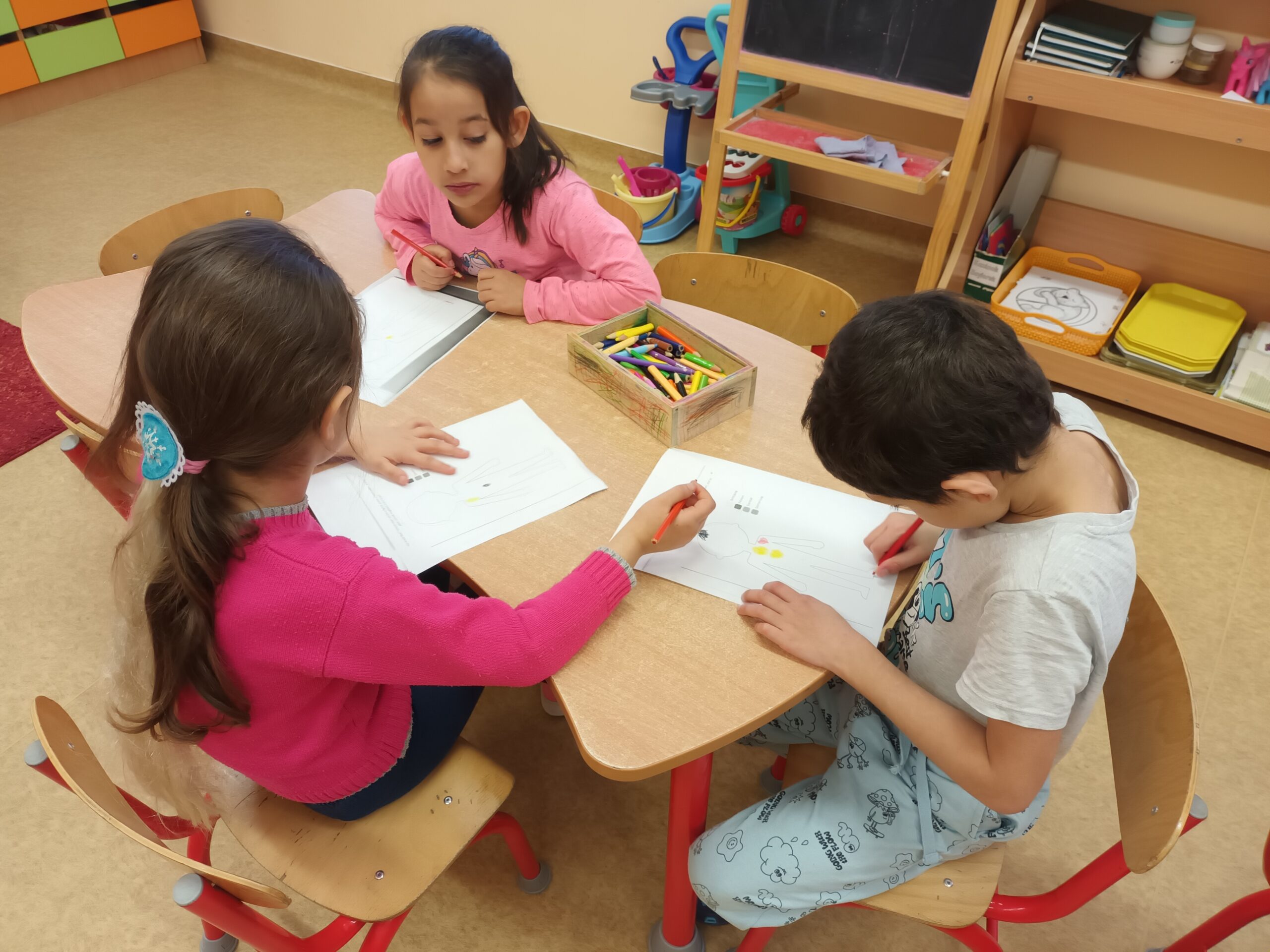 Munkafüzet 47. oldalán lévő feladat nagyon érdekes volt. Hol érzed a boldogságot? Szinten egy két kivétel nélkül a mellkas területére helyezték de a félelmet szimbolizáló fekete színt a gyomor és fej területén színezék.