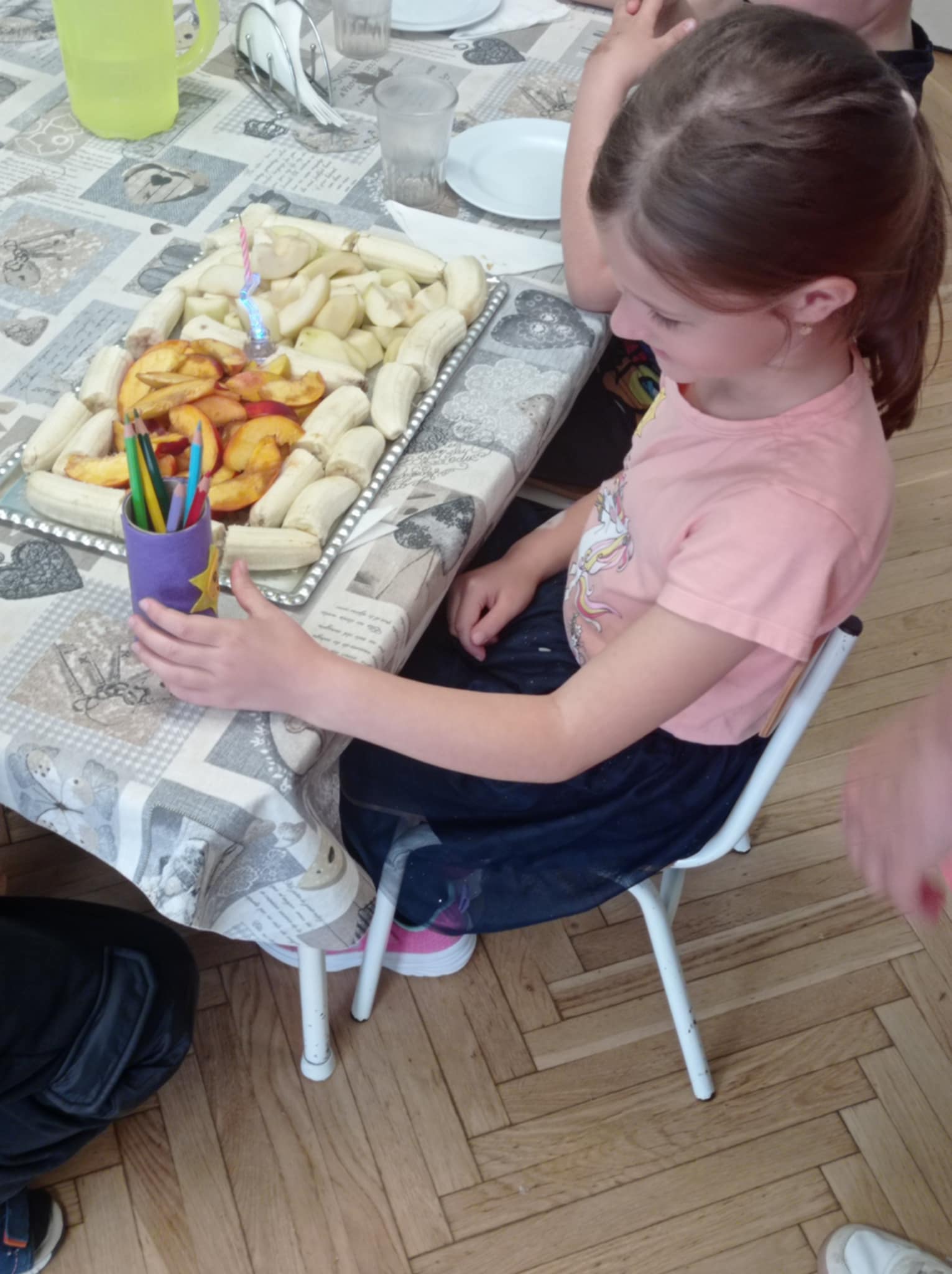 Felidéztük mindazokat a boldog perceket/eseményeket, melyeket ez a nevelési év adott nekünk. Közösen megünnepeltük a csoportban még utoljára egyik iskolába menő nagycsoportosunk születésnapját a szokásos módon közös énekléssel, köszöntéssel, ajándék átadásával, és a gyümölcsből kialakított torta elfogyasztásával.