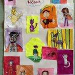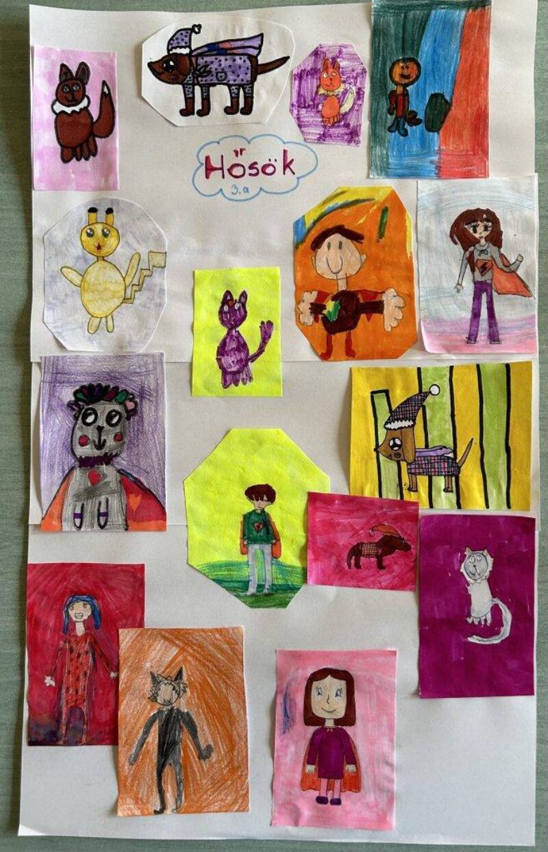 A gyerekek a saját hőseiket rajzolták meg, a képekből tablót készítettünk közösen.