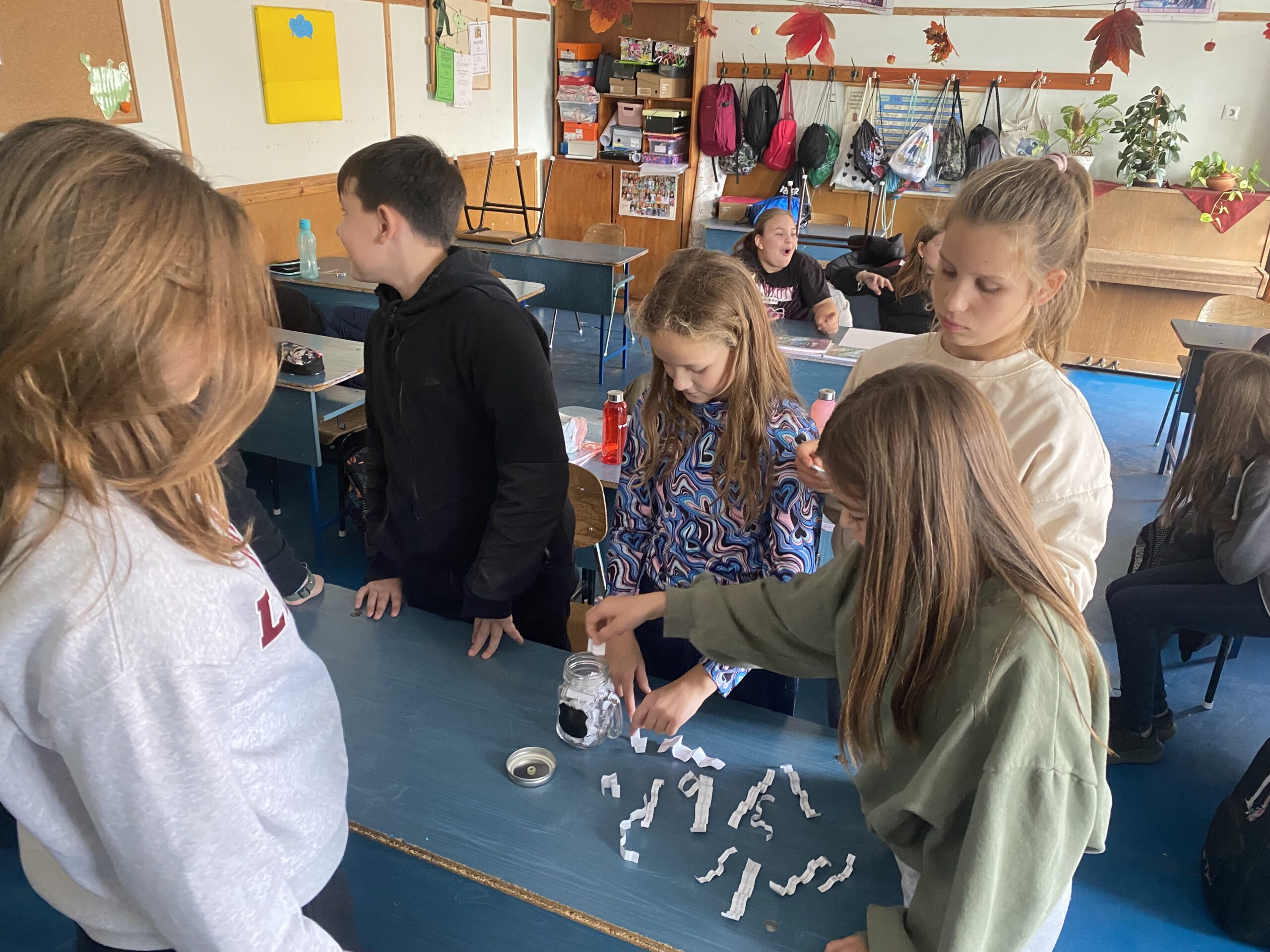 Mindenki húzott egy pozitív idézetet, ezeket felírtuk egy lapra, végül egy félig teli poharat rajzoltunk mellé.