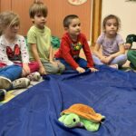 A játék során a gyerekek az önszabályozás lehetőségeit gyakorolhatták testmozgáson keresztül, valamint segített számukra a test-érzelem kapcsolat felismerésében, impulzus kontroll gyakorlásában, valamint a társas kapcsolódásban. Ezt követően visszamentünk a „tengerpartra”, és „Teknősbéka-pihenőt” tartottunk-relaxációs gyakorlat keretében.