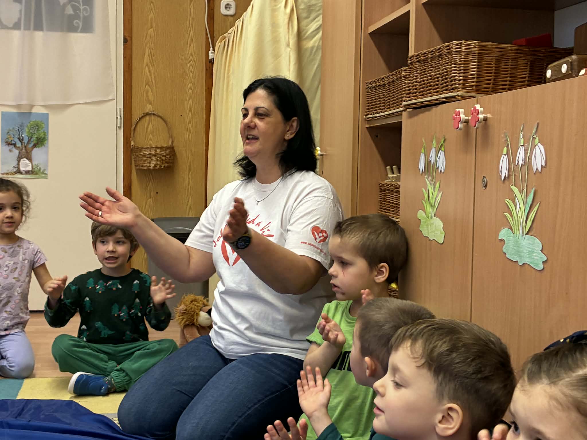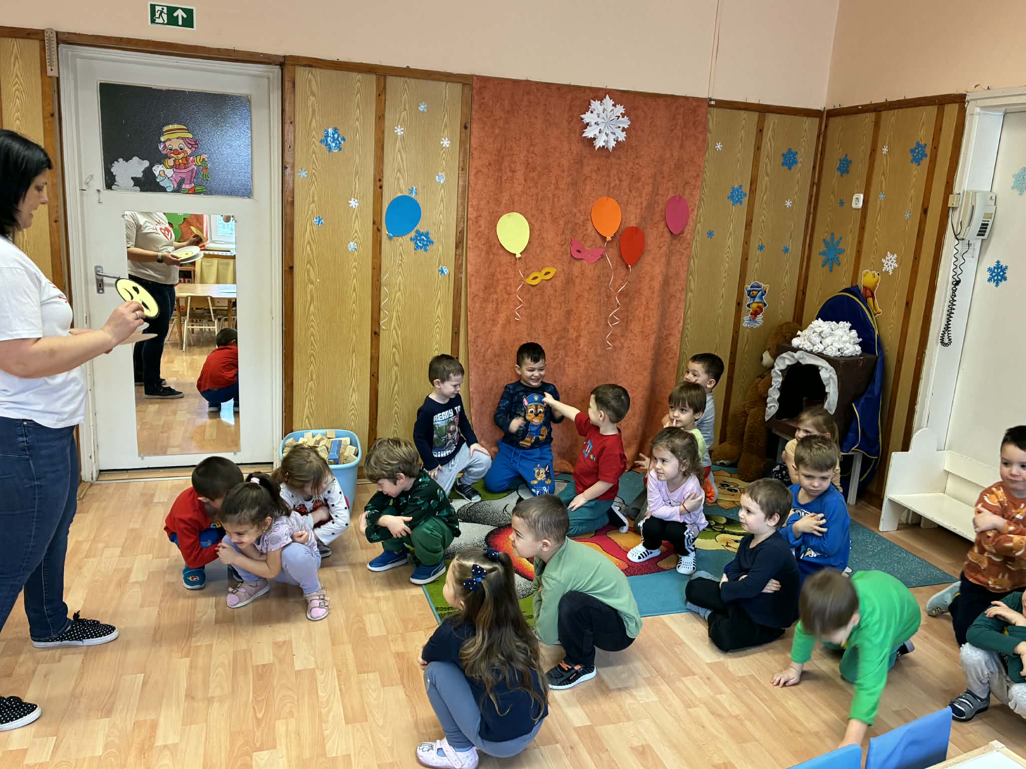 A gyerekek zenére szabadon jártak a teremben, majd amikor mutattam