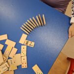 A dominó napon a gyerekek nagyon lelkesen építettek különböző tornyokat a dominóból. A Tavaszi ébresztő mese tetszett a csoportnak, de a kérdéseknél kiderült igen kevesen járnak erdőbe kirándulni. Mik vannak az erdőben azt tudták, hogy fák és állatok. Barlangot nehezen tudták elképzelni, nincs tapasztalatuk. A hangya ha szaladna rajtuk, többen megjegyezték, hogy nem szeretnék, félnek. A tenyerüket körbetudták rajzolni, de nem túl kreatívak, nem nagyon sikerült belerajzolni. A csoportnak sok segítség kellett a megvalósításokhoz.