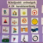 Az első foglalkozást a Szívmanó nyugilégzés kártyán található két gyakorlattal indítottuk, hogy a stresszes, pörgős mindennapjaikból megérkezzenek a boldogságórára. Célzott kérdésekkel felelevenítettem ismereteiket az erények és erősségek témában. Ezután a tavaly elvégzett VIA-teszt eredményei alapján felolvastam egy-egy tanuló 5 legfontosabb erősségét, és magukra kellett ismerniük. Nem mindenkinek sikerült, de a gyerekek segítettek egymásnak. Azon is elgondolkoztak, hogy most, egy év elteltével mennyiben változtak, rendeződtek át ezek az erősségeik, jelentek-e meg újak a listájukon. Ezután megrajzolták egy-egy erősség szimbólumát, ők hogyan jelenítenék meg, így elkészült a mi karaktererősség-tablónk. Mivel nem vagyunk annyian, ahány karaktererősség van, a kimaradt erősségekhez és kerestem szimbólumokat a következő órára, ők pedig kiszínezték.