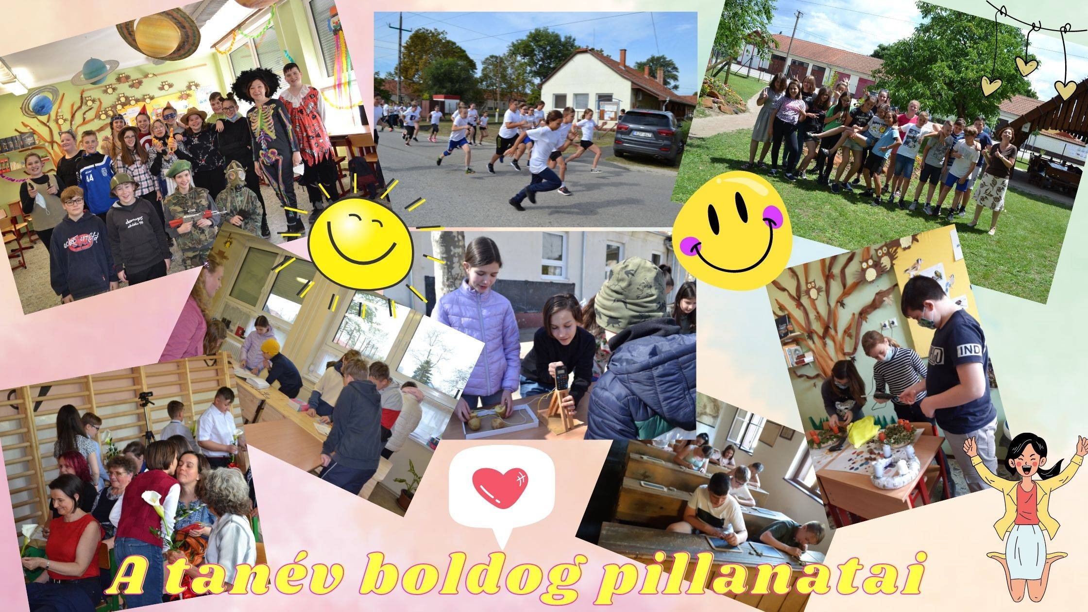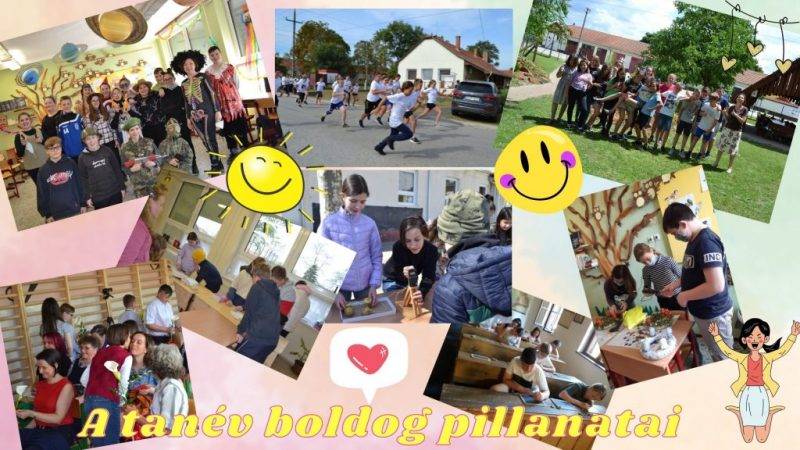 A tanév végéhez közeledve a gyerekekkel átnéztük a tanév során készült fényképeinket és megpróbáltuk kiválasztani azokat amelyek a legboldogabb eseményeket örökítették meg. Mindenkinek más tetszett, elég nehéz volt szűkíteni a kört erre a pár képre, amiből elkészítettünk egy montázst. Az összeállítást kinyomtattuk és minden gyerek hazavihette.