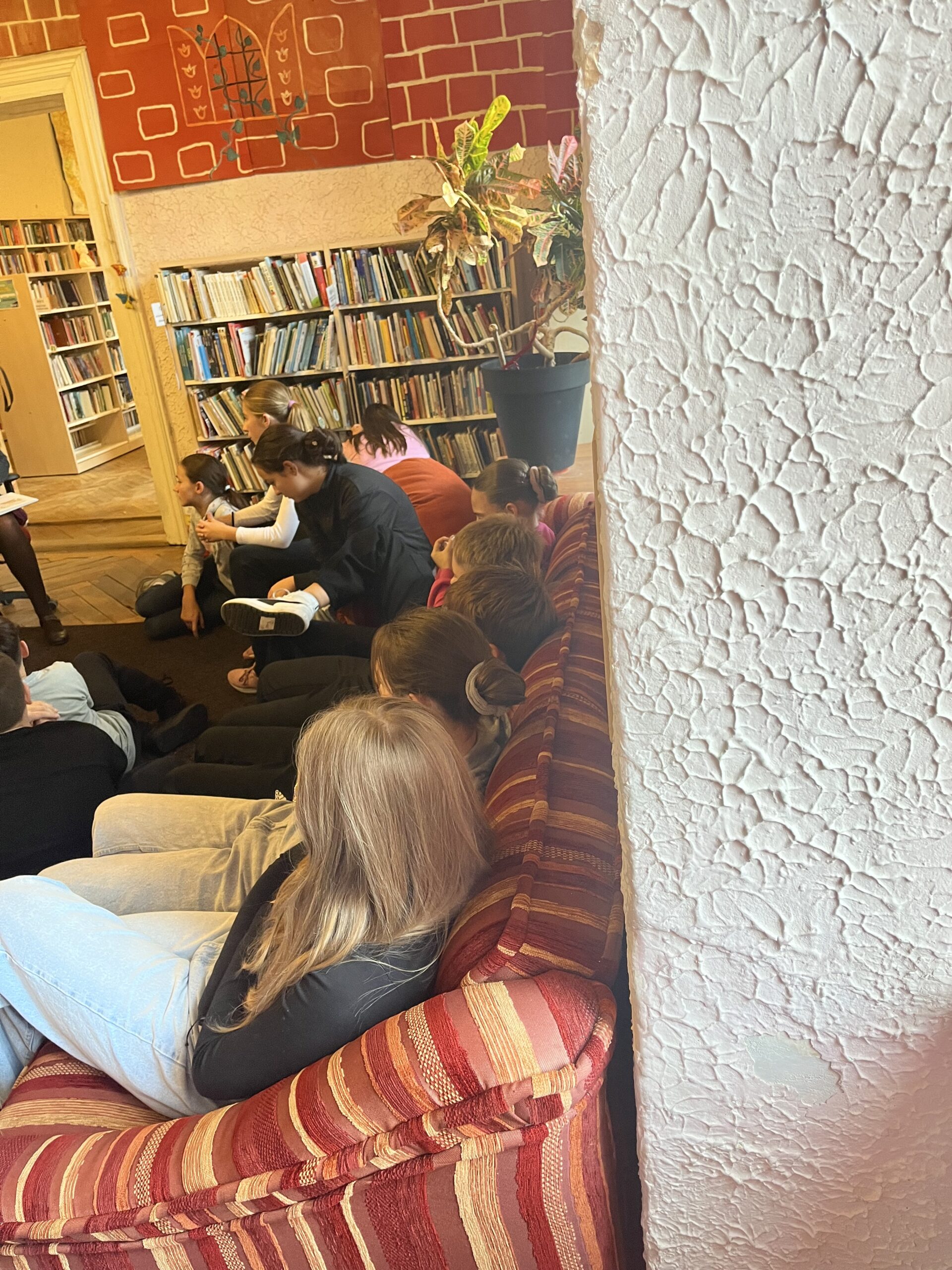 A látogatás végén a kedves könyvtáros hölgyeknek elénekeltük iskolánk himnuszát.