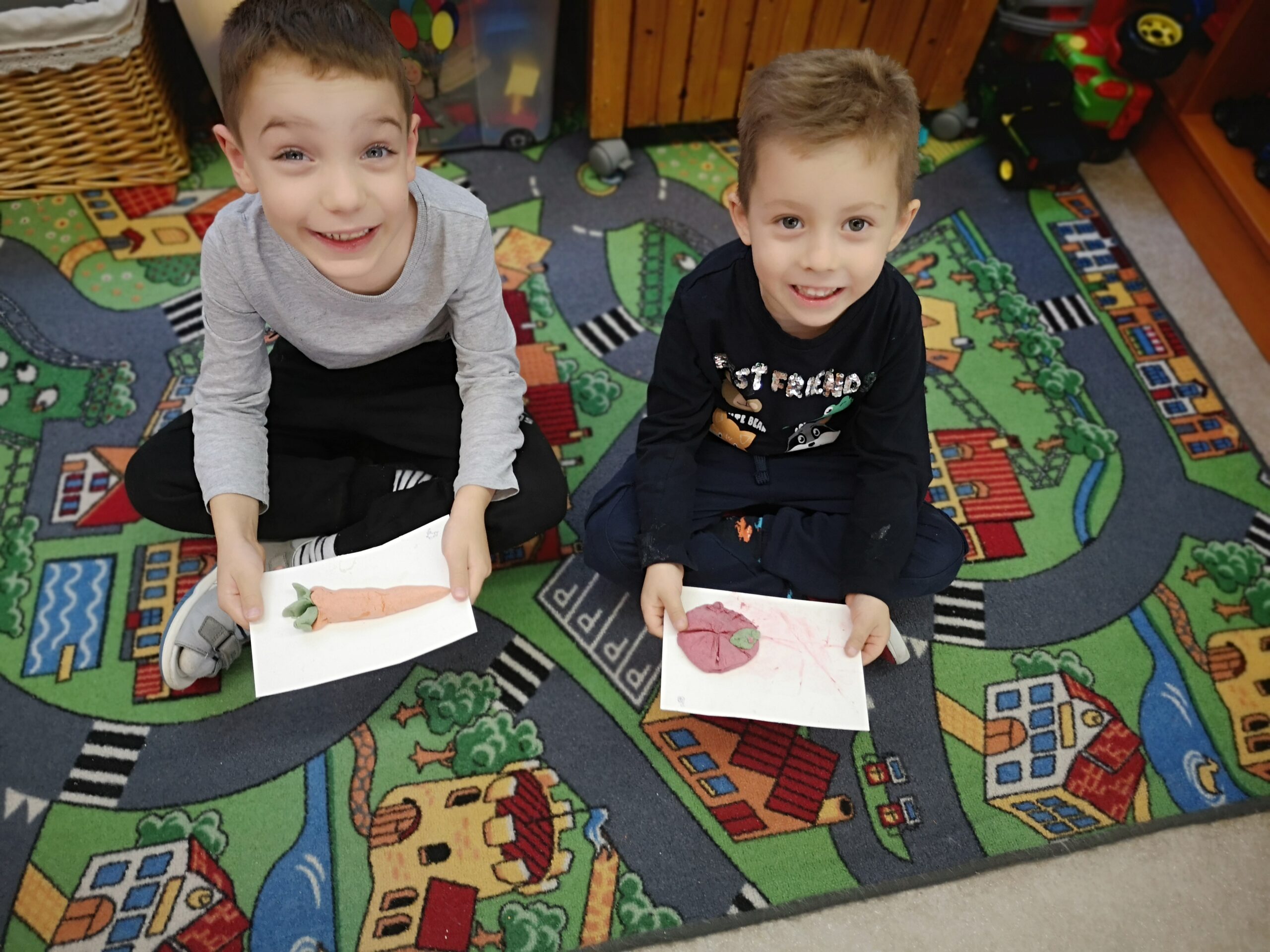 A Mogyoró csoportos gyermekekkel az optimizmus gyakorlásán belül a megoldhatatlan problémákkal szembenézést és a kitartást gyakoroltuk az Őszi zöldségek és gyümölcsök projekt keretein belül. Só-liszt gyurmával tetszőleges őszi zöldséget vagy gyümölcsöt készíthettek a gyermekek, miközben kitartóan próbálkoztak, hogy számukra minél szebb produktumokat állítsanak elő. Kíhívást jelentett számukra az alma alakja vagy például a sárgarépa zöldjének elkészítése, de nem adták fel, új módszert kerestek kis segítséggel, amit alkalmazni tudtak.