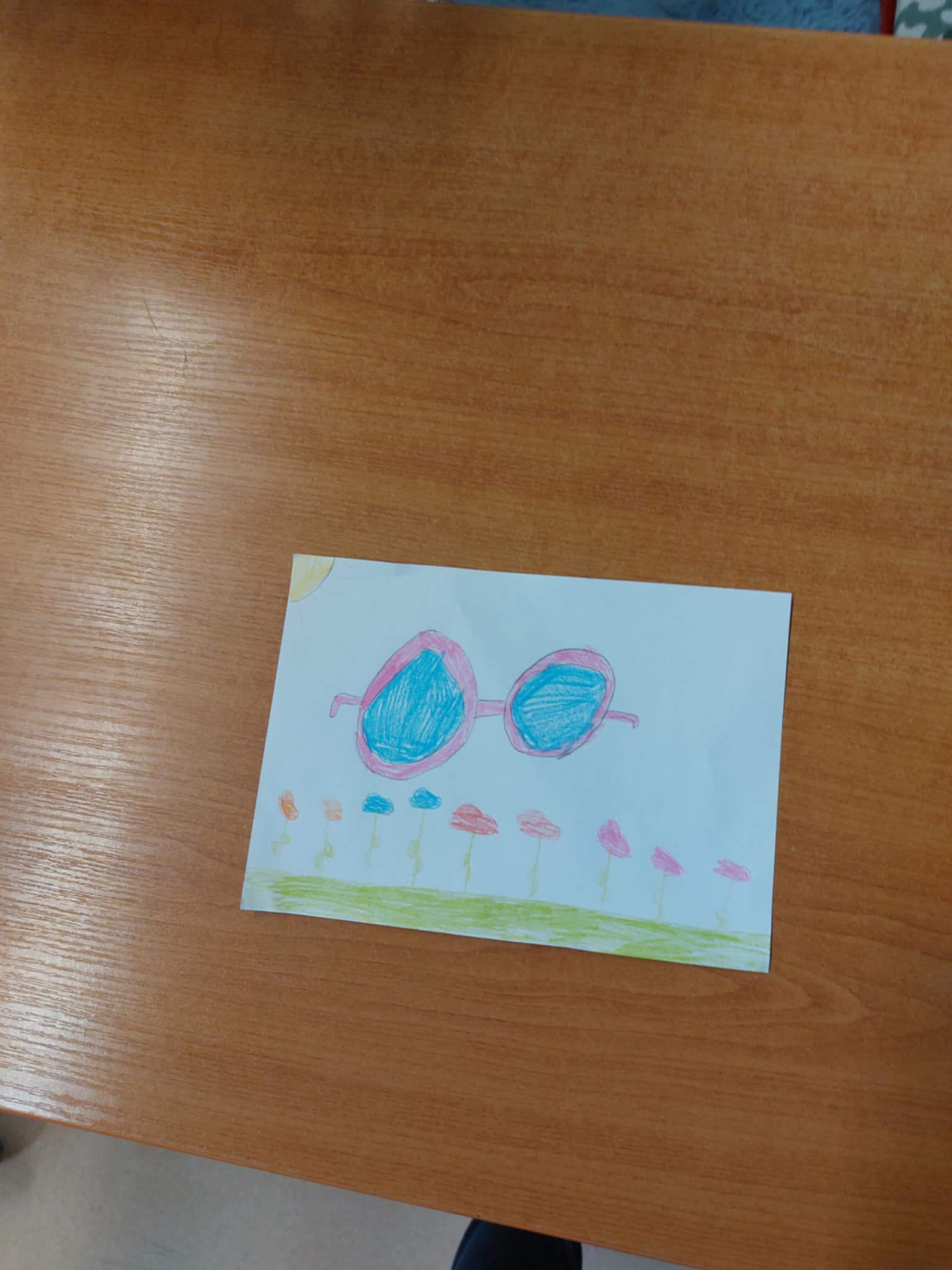 Aztán Tódi a kis törpe meséjével ismerkedtünk meg. Elképzeltük hogy nekünk is van ilyen szemüvegünk, felraktuk, és megbeszéltük milyen jó dolgokat látunk azon keresztül. Ezt követően rajzoltunk is pozitív, jó dolgokat.