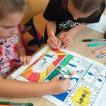A téma bevezetésként felidéztük mindazt, amit az elmúlt évek során az optimizmusról tanultunk. Idén is két jóbarátunk, “Optimista Pista és Pesszimista Pál” segített nekünk abban, hogy összegyűjtsük azokat a tulajdonságokat, amelyeket érdemes magunkban erősíteni, mert segítenek átlendülni a nehezebb időszakokon, illetve kerülendő, mert csak akadályoz bennünket a boldogság elérésében. A gyerekek képregényeket terveztek és rajzoltak, amelyek központi üzenete az optimizmus fontossága volt. A csoportok felé az a kérés fogalmazódott meg, hogy a történetek megalkotásakor lehetőség szerint saját élményeikből merítsenek ihletet. A kész alkotásokat minden páros / csoport bemutathatta az osztály előtt, így megoszthatták egymással gondolataikat és tapasztalataikat is.