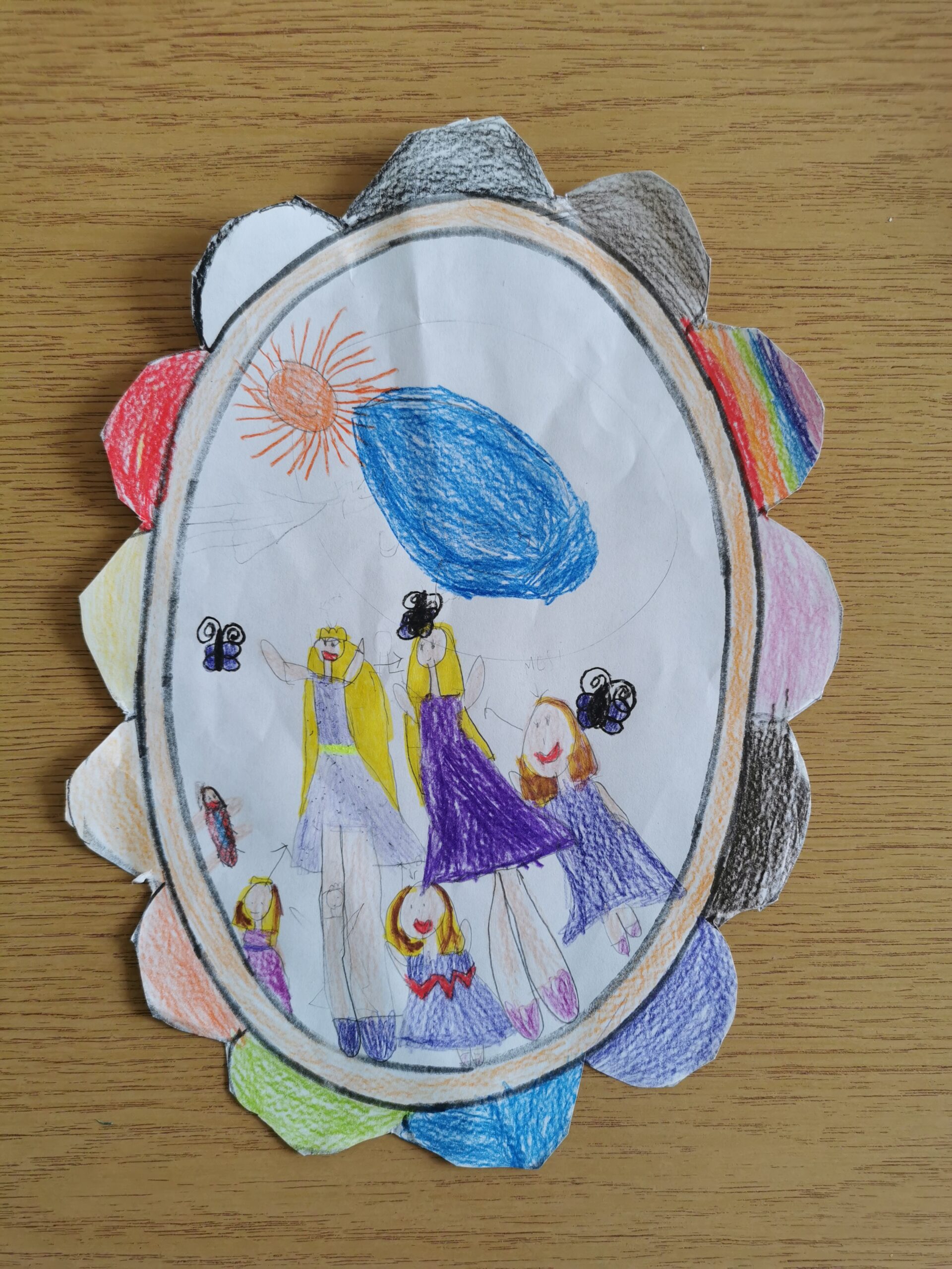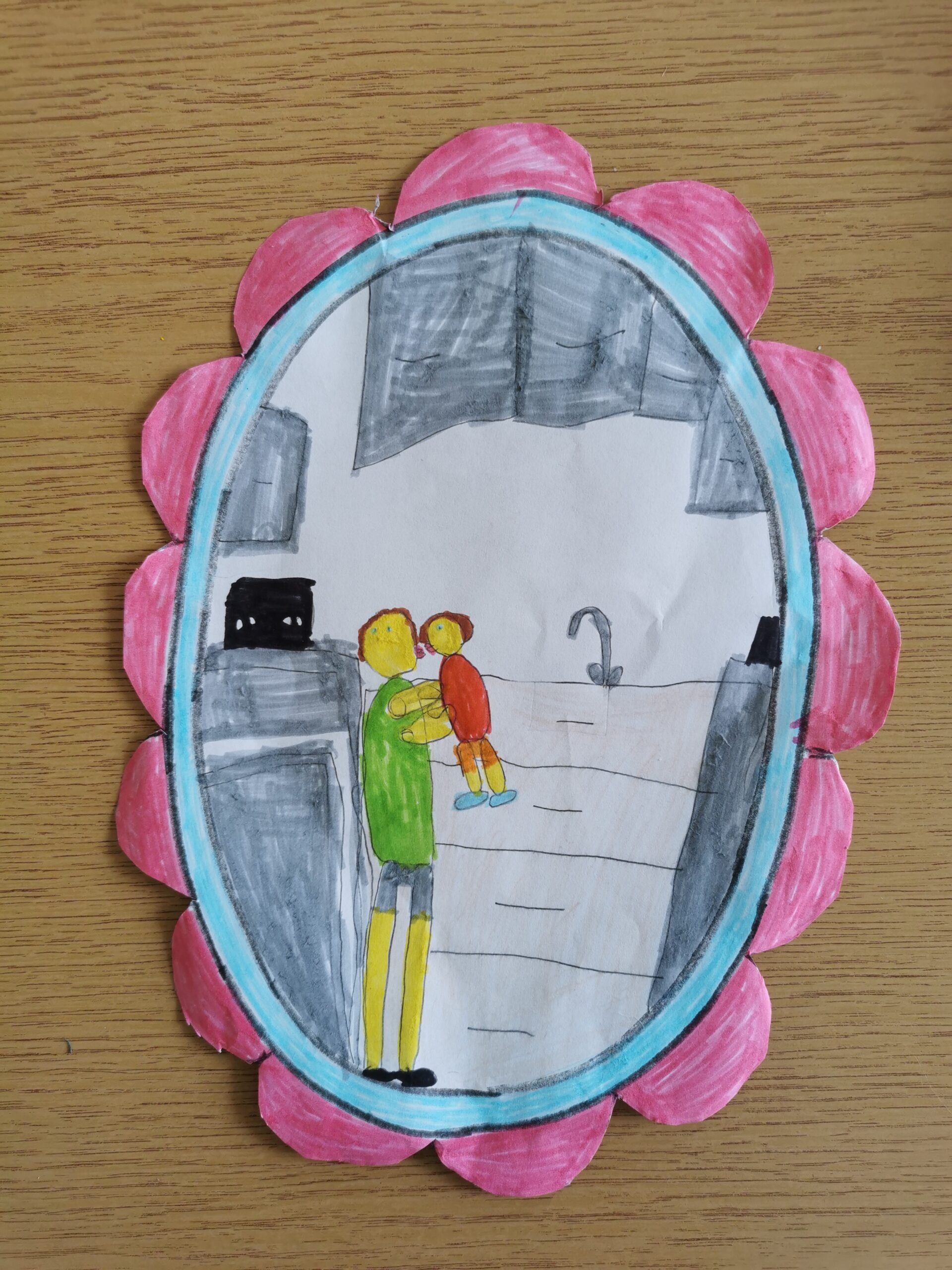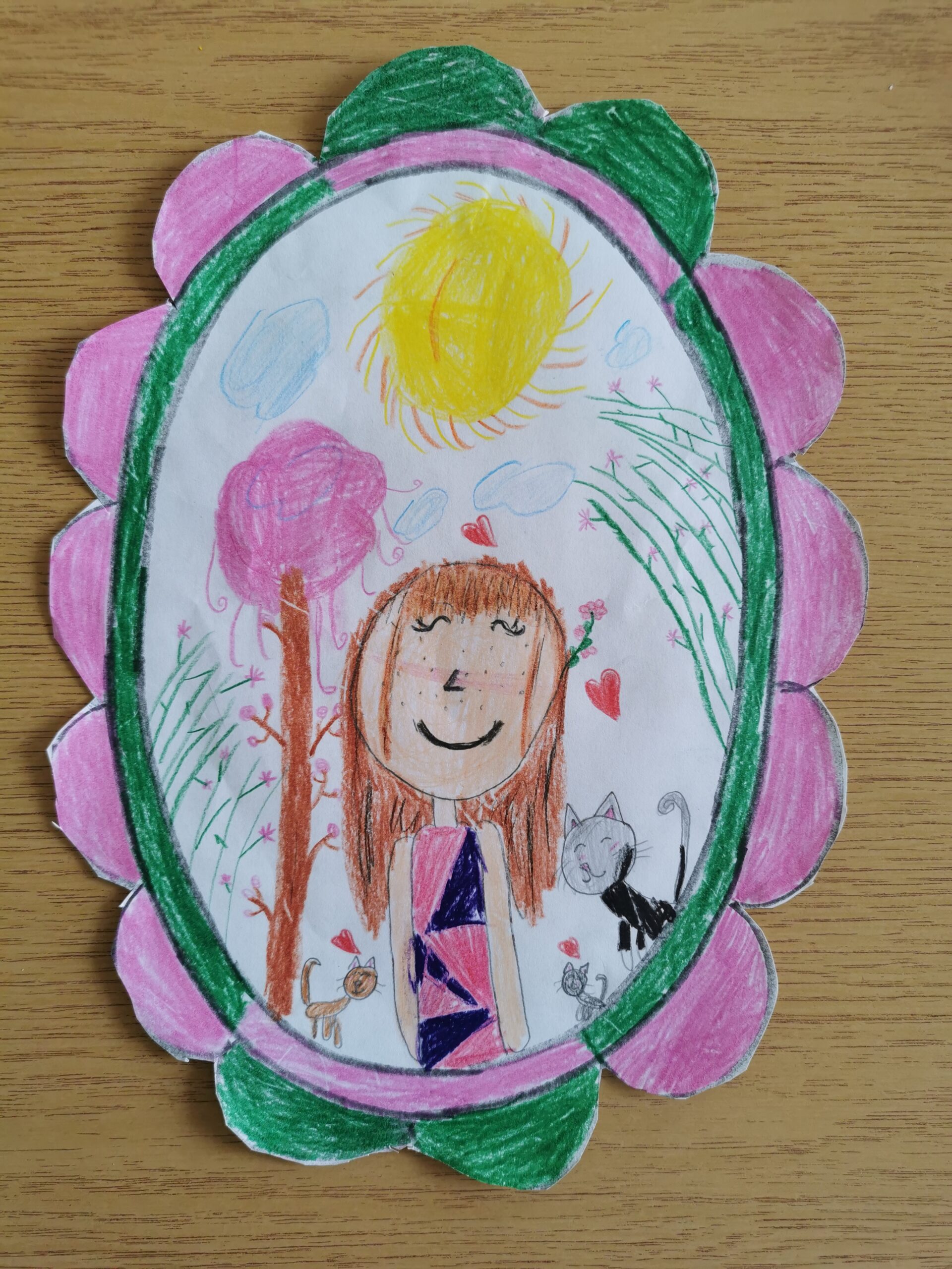 Elkészítettük a boldoggá tevő varázstükrünket. Az egyik kislány megjegyezte az óra végén, hogy otthon ki fogja tenni a szobája falára a saját tükrét és ha szomorú lesz, akkor mindig belenéz. 😊