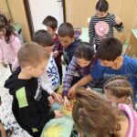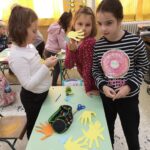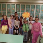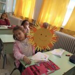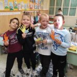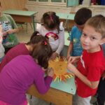 • Sárga kartonból napot készítünk, a nap sugarai a gyerekek tenyerei: körbe rajzolják, kivágják.