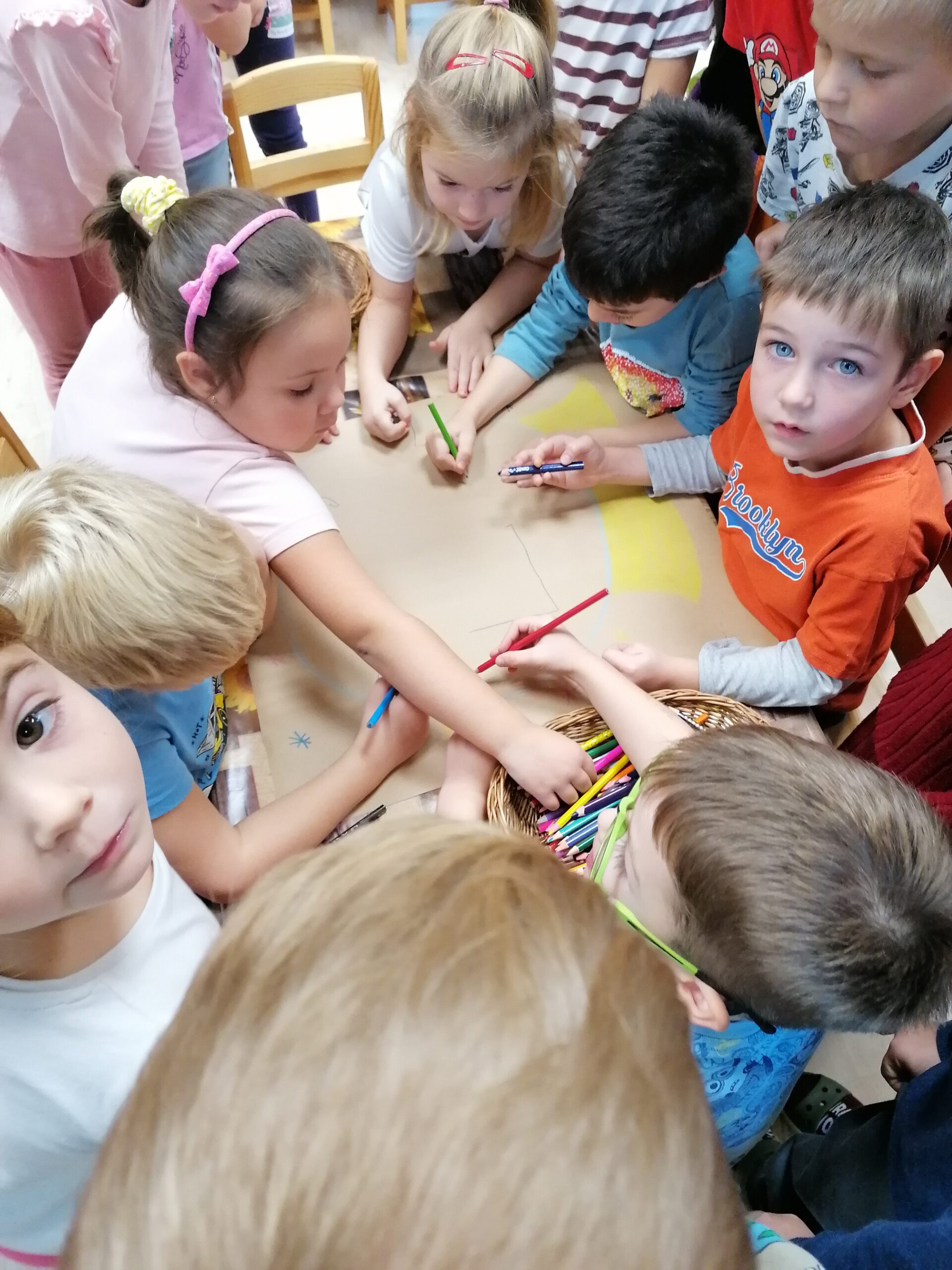 A hónapban az optimizmus gyakorlását próbáltuk a gyermekekben erőstése. Megbeszéltük, hogy mit is jelent az, ha valaki optimista. Beszélgettünk arról, hogy mennyi mindent meg tudtak már tanulni az eddigi életükben, mennyi mindenre képesek. Majd arról beszéltünk, hogy ki-mit szeretne még elsajátítatni, minek örülne, ha meg tudná tanulni? Végül minden gyermek a varázsgömbbe belerajzolhatta a kívánságát.