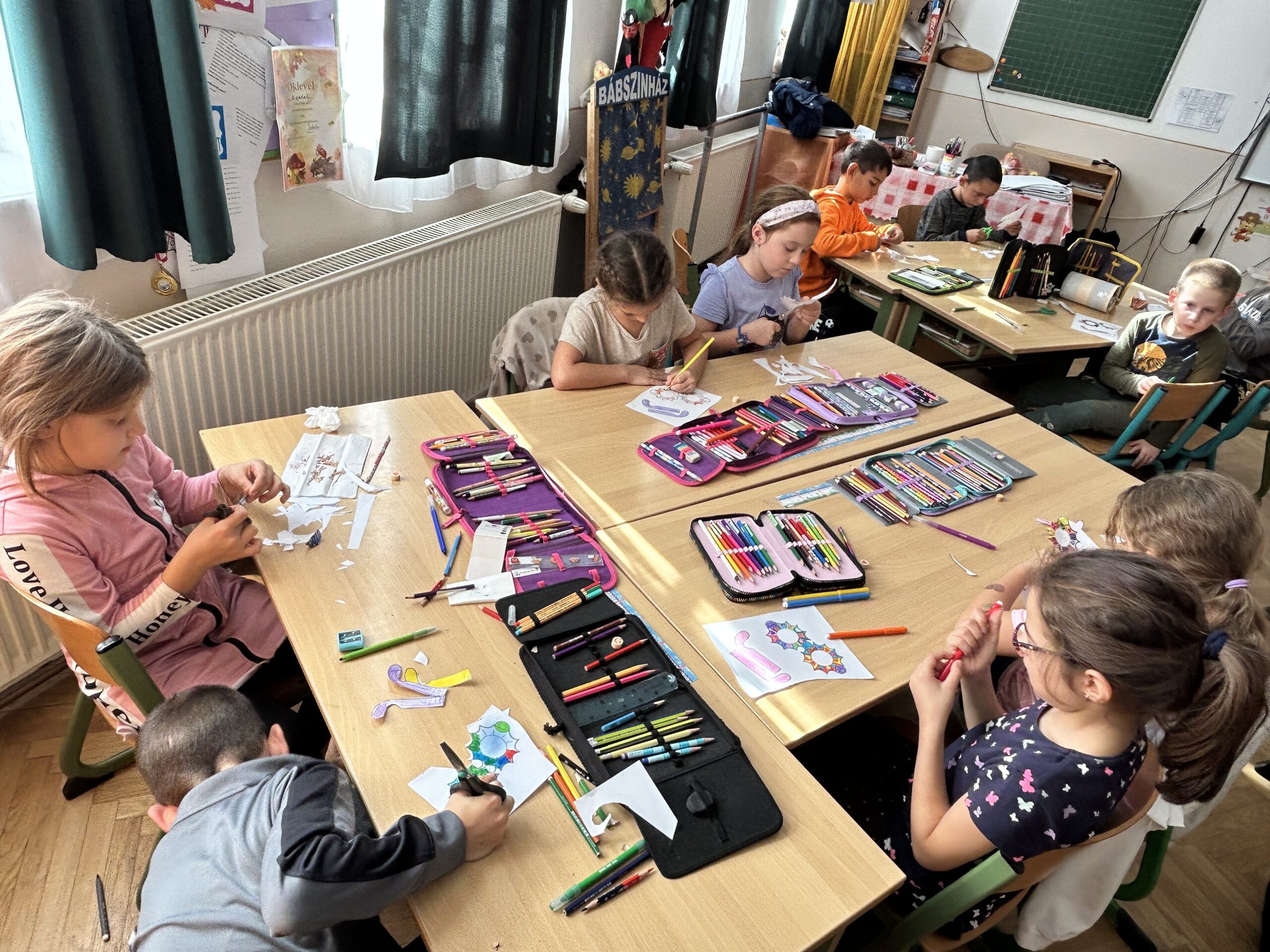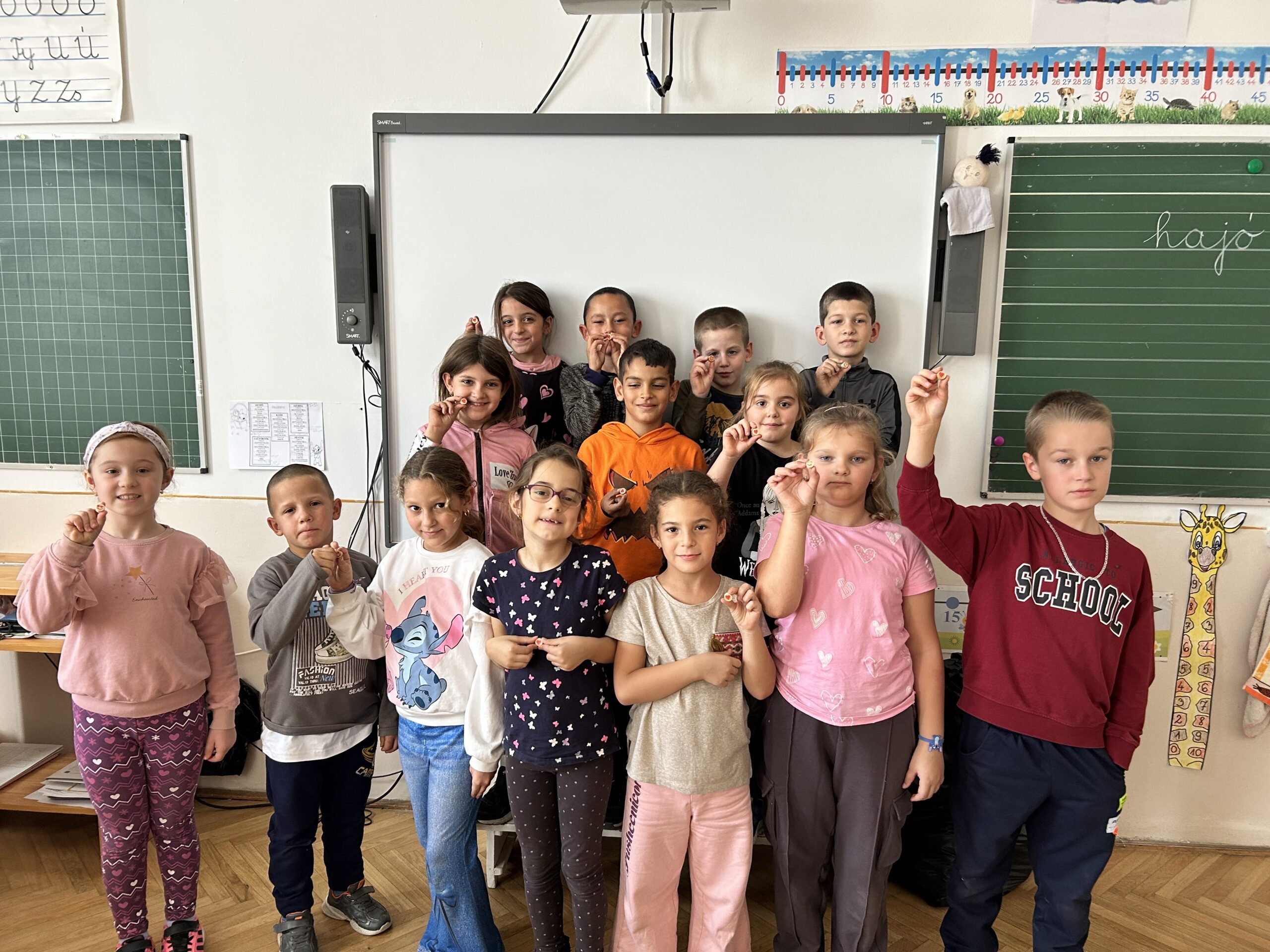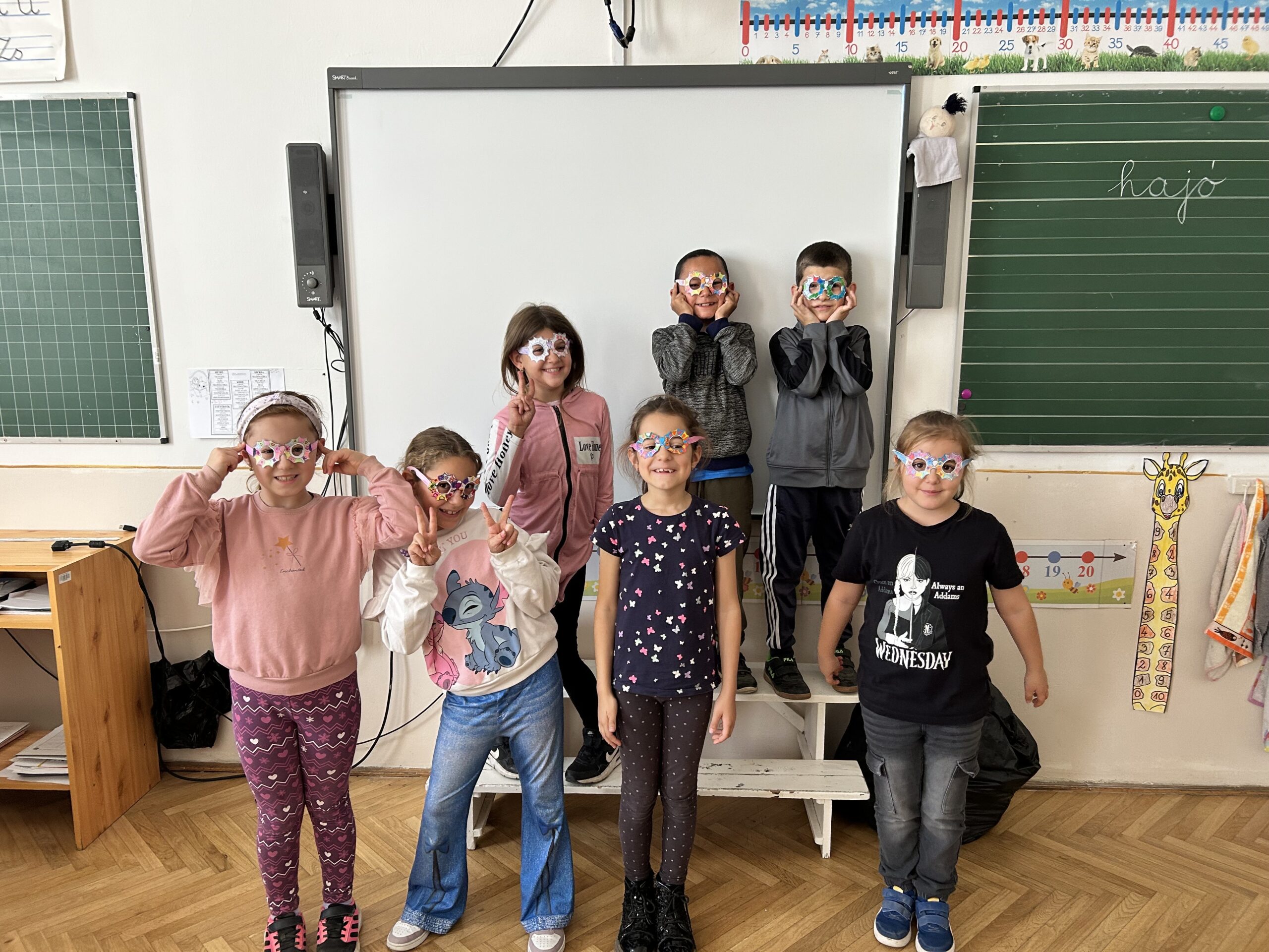 Az optimizmus gyakorlása során megtanuljuk észrevenni a jót a mindennapokban, még a nehéz helyzetekben is. A foglalkozáson egy rövid kisfilmet néztünk meg, amely bemutatta, hogyan segíthet a pozitív gondolkodás a problémák leküzdésében. Ezután mindenki készített egy „pozitívum kavicsot”, amelyre egy kedves szimbólumot (mosolygós fejet, szívet, virágot) rajzoltunk egymásnak, hogy emlékeztessen bennünket a jó dolgokra, ezeket a kis köveket beletettük a tolltartókban, hogy mindig a közelben legyenek. Később színes, vidám „pozitív szemüveget” alkottunk, amin keresztül szimbolikusan megtanultuk pozitívan látni a világot. Ezek a kreatív feladatok segítettek abban, hogy jobban megértsük az optimizmus jelentőségét. A nap végére mindenki gazdagodott egy kis reménnyel, és új eszközökkel a pozitív hozzáállás gyakorlásához.