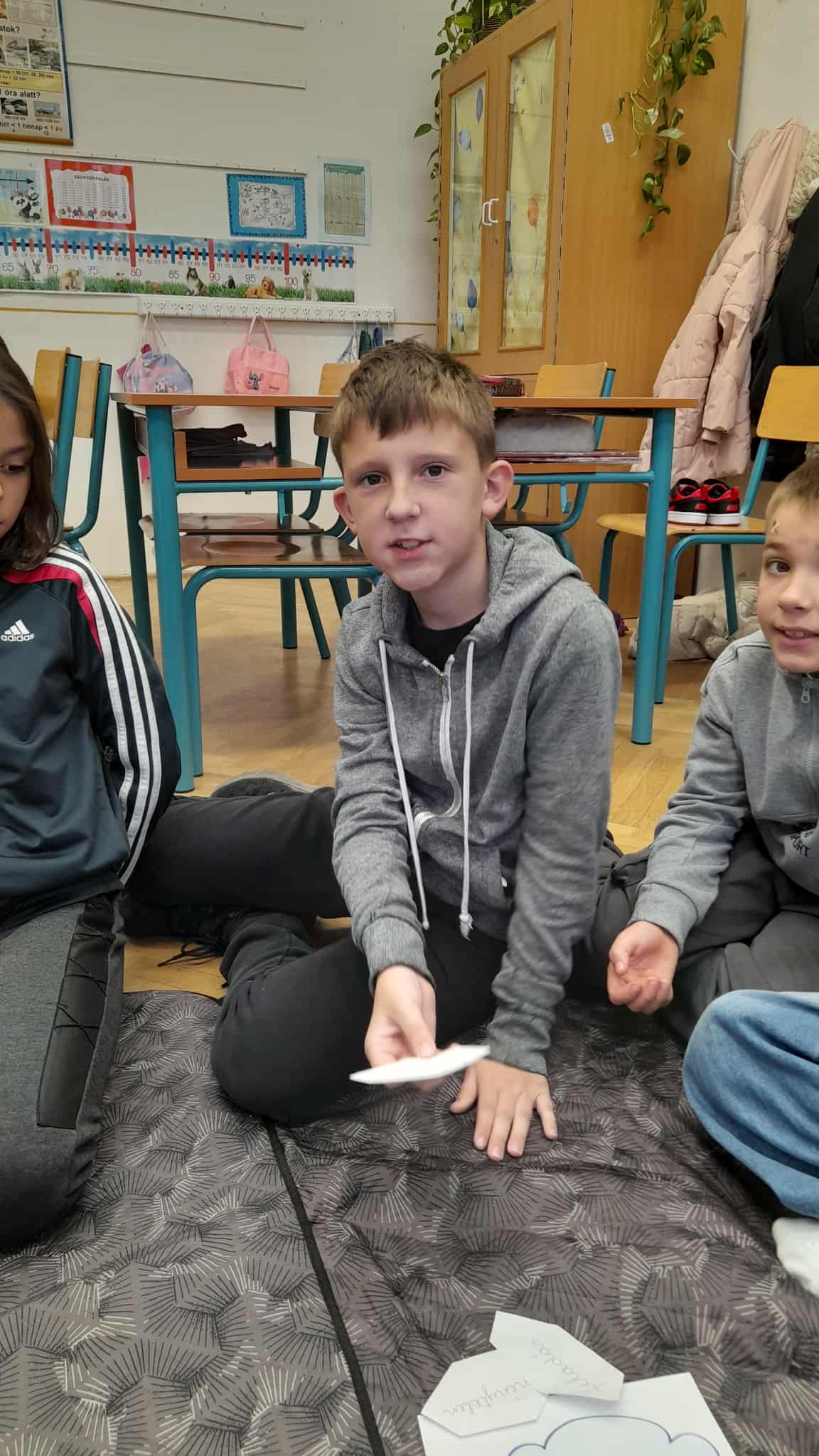 Bátorító kört indítottunk, ahol a megkezdett mondatokat fejezték be a gyerekek,