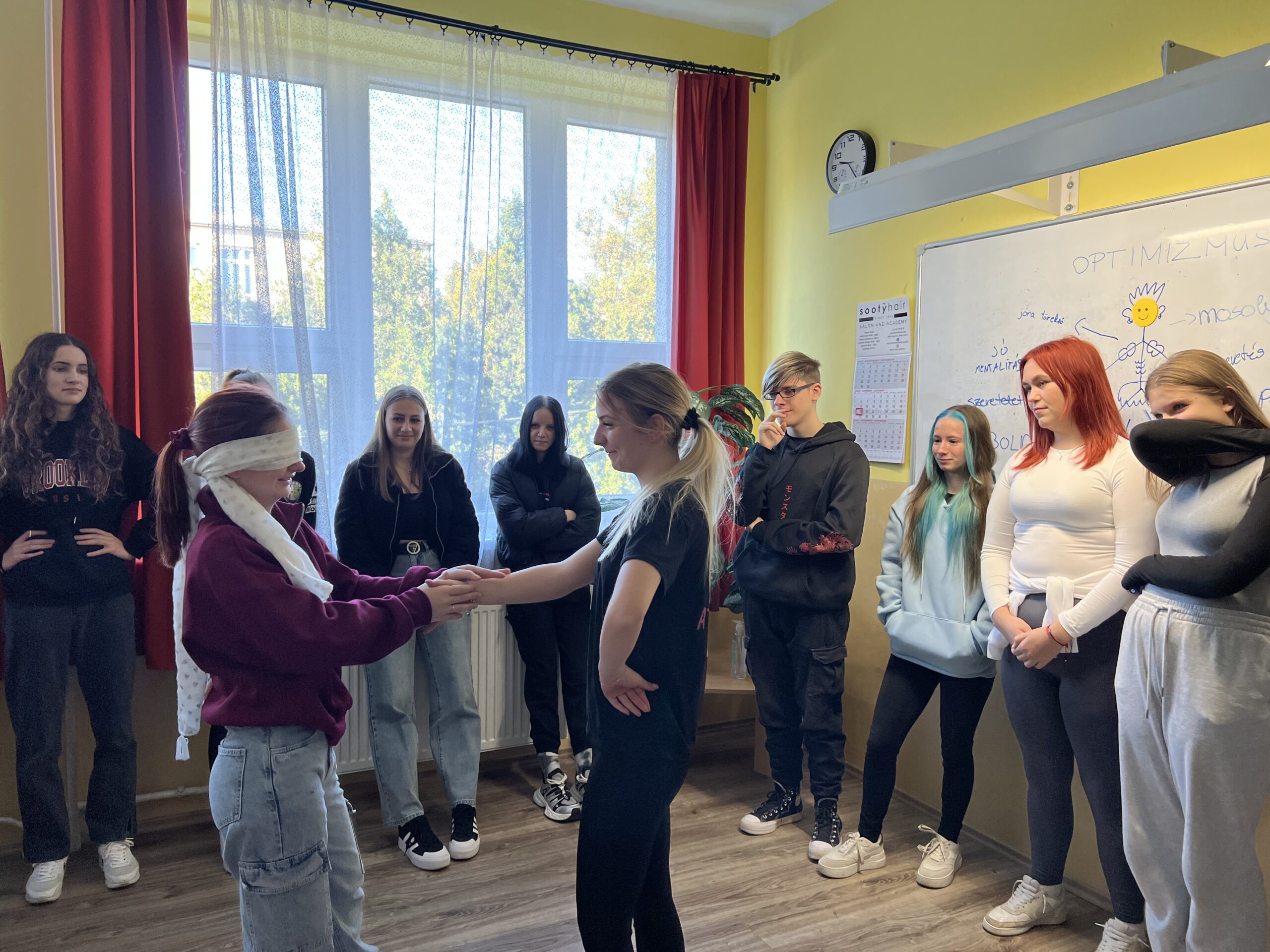 A tanulók körbe állnak és mindenki mond magáról egy optimista tulajdonságot.