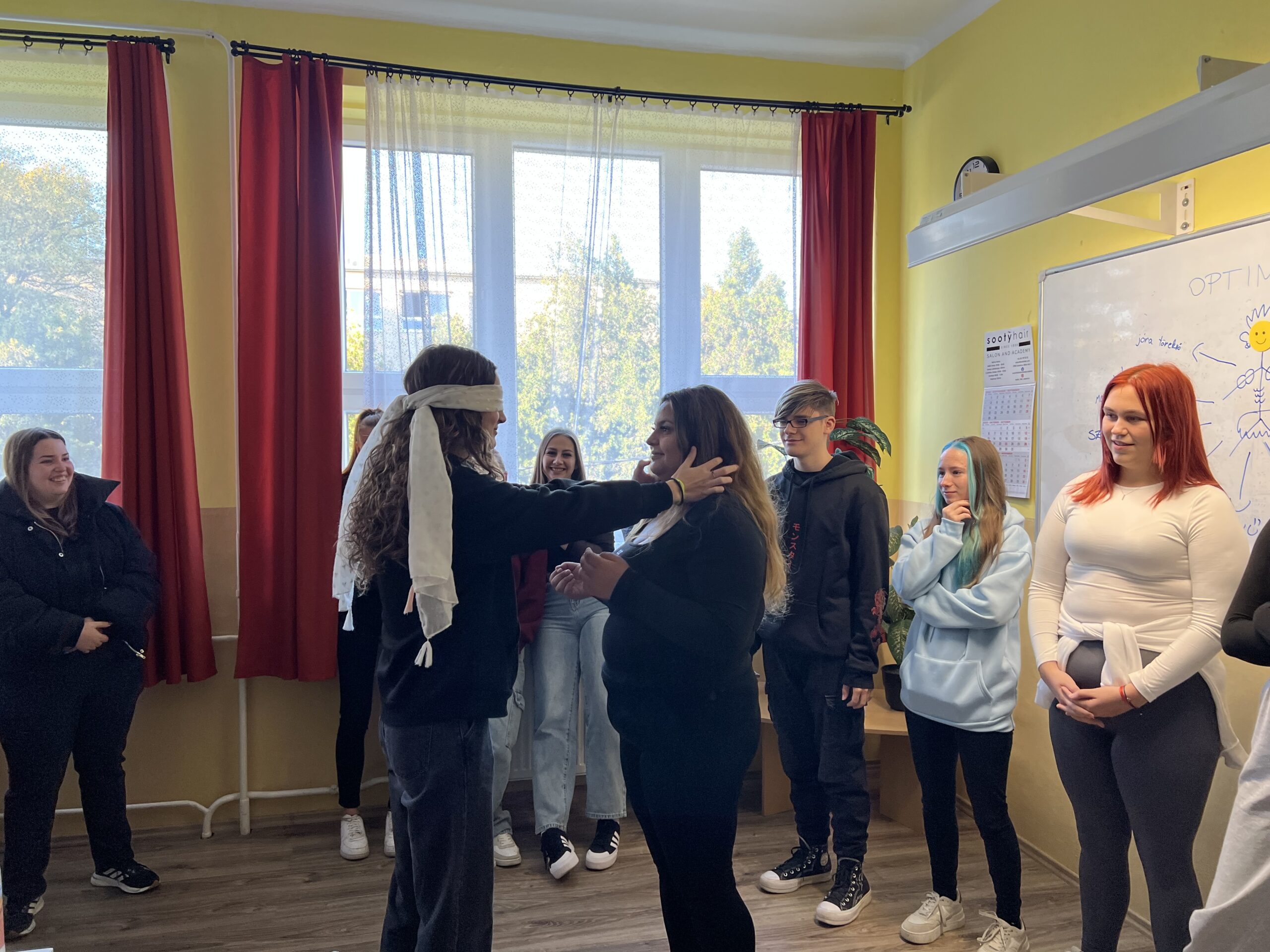 Egy önként jelentkező tanulónak bekötjük a szemét és csak a tapintását használva ki kell találnia, hogy ki áll vele szemben. Ha nem sikerül, akkor egy-két mondattal segíthetnek a tanulók. Ha sikerült kitalálnia, akkor megölelik egymást és új jelentkezővel folytatódik a játék.