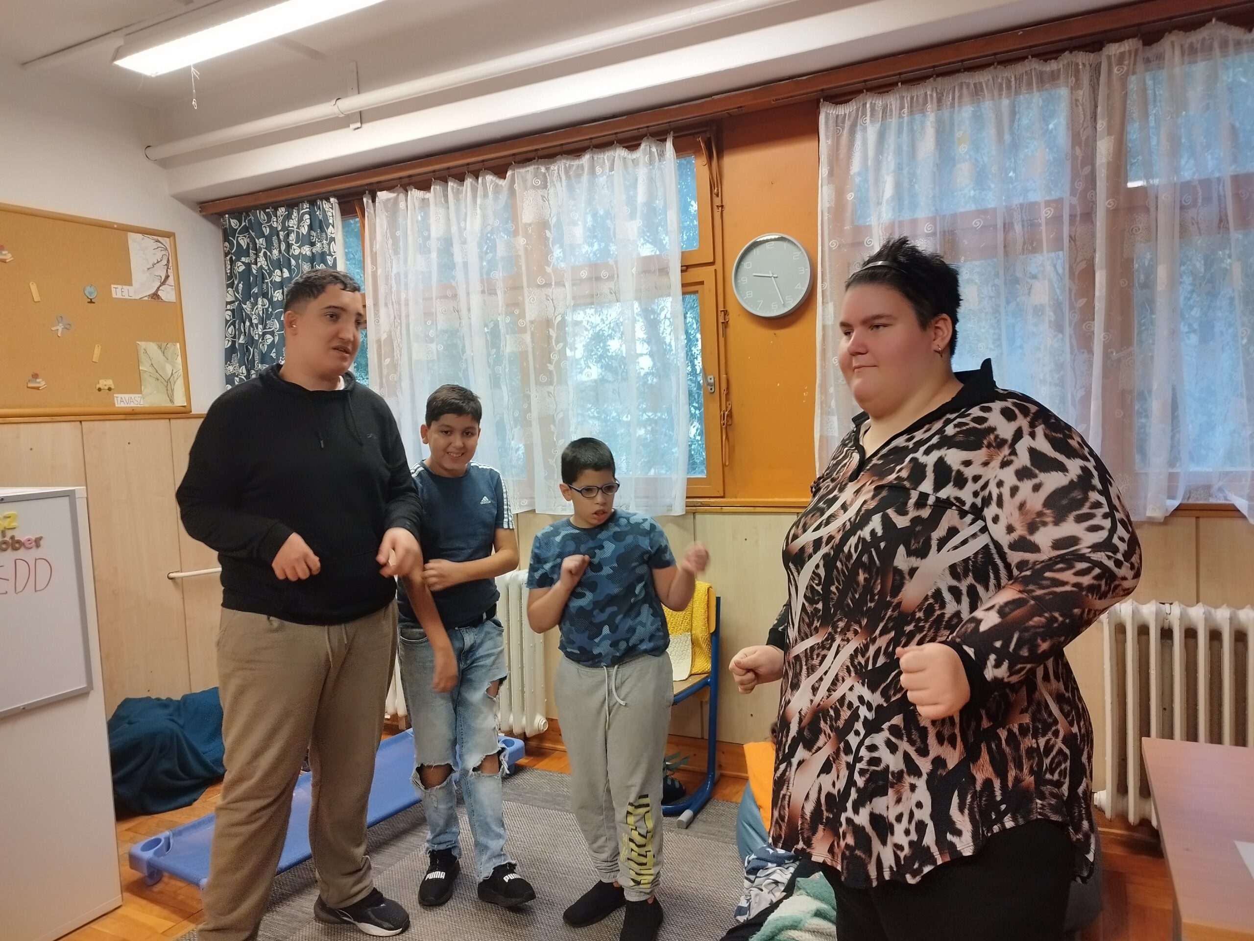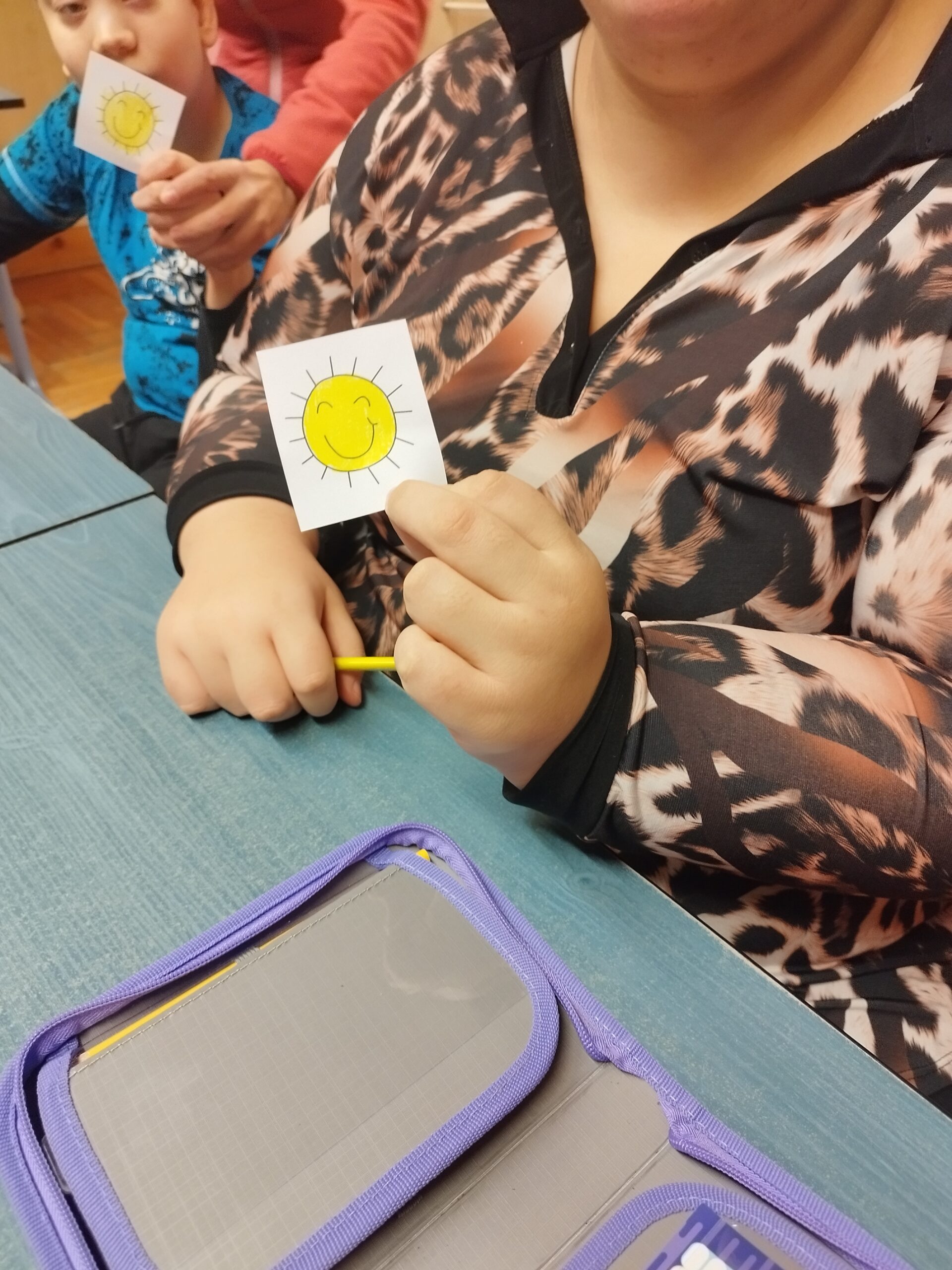 Rajzoltunk mosolygós napocskákat, végül egy tánccal, vicces mozdulatokkal zártuk a foglalkozást.