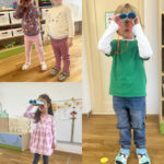 Készítettünk összegöngyölt színes kartonpapírból “varázstávcsövet”. Ha bármikor