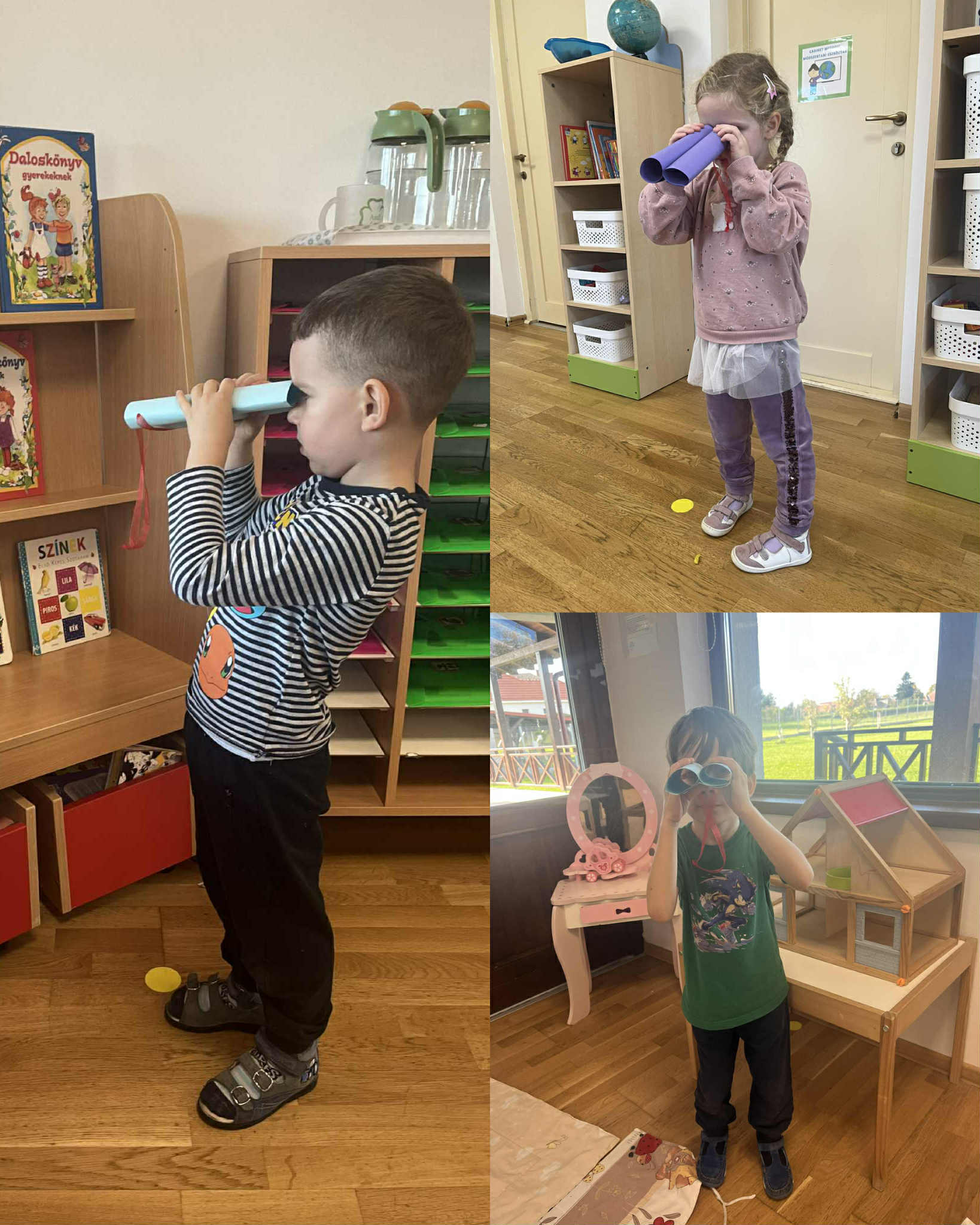 Készítettünk összegöngyölt színes kartonpapírból “varázstávcsövet”. Ha bármikor
