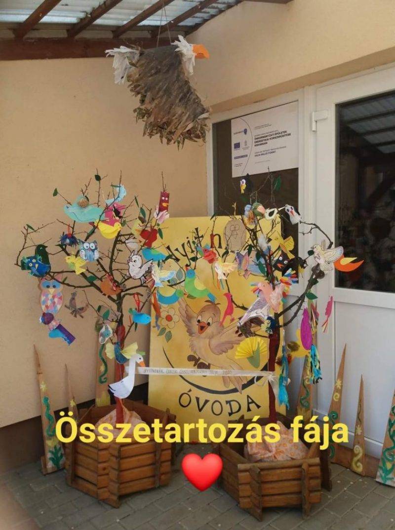 Óvodánk profilja a környezetvédelem így a zöld jeles napokat kiemelve ünnepeljük. A Madarak Fák napján megválasztjuk az év Nyitnikék fáját és madarát. Most arra gondoltunk ezen a jeles napon az összetartozás fáját készítsük el. Meghirdettük az óvodai csoportokban hogy mindenki aki hozzánk a Nyitnikék óvodához az Örökös boldog óvodához tartozik készítsen egy madárkát és tegye be a postaládába majd mi felrakjuk az összetartozás fára. Nagyon boldogok vagyunk hisz közel 70 madarat hoztak a gyermekek. Boldogság van hisz óvodánk gyermekei és a kedves szülők lelkesen és igaz szívvel támogatták az összetartozás fájának sikerét. Azt gondolom hogy ebben a helyzetben is bebizonyították Nyitnikék óvodásaink hogy össze tartozunk.