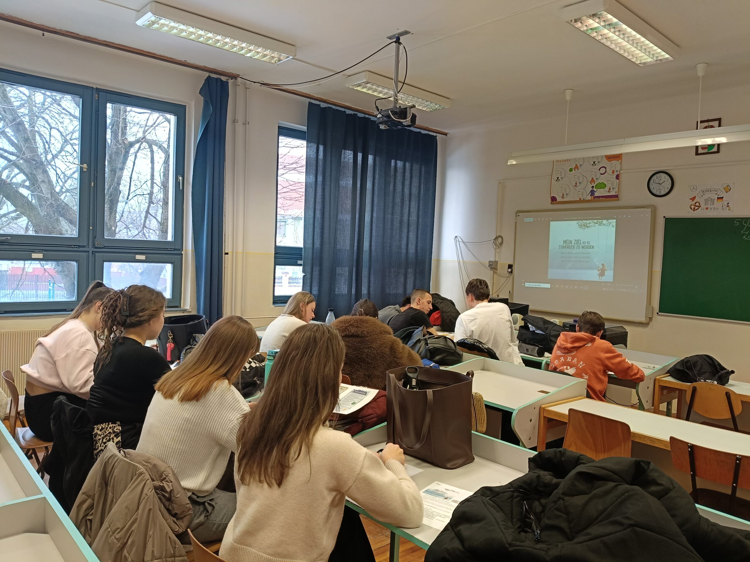 Januárban is kíváncsian várta a következő boldogságórát a 11. F-s németes csoportom. A hónap témájához („Célok kitűzése és elérése”) kapcsolódóan az óránk központi feladata egy német nyelvű „bakancslista” elkészítése volt.