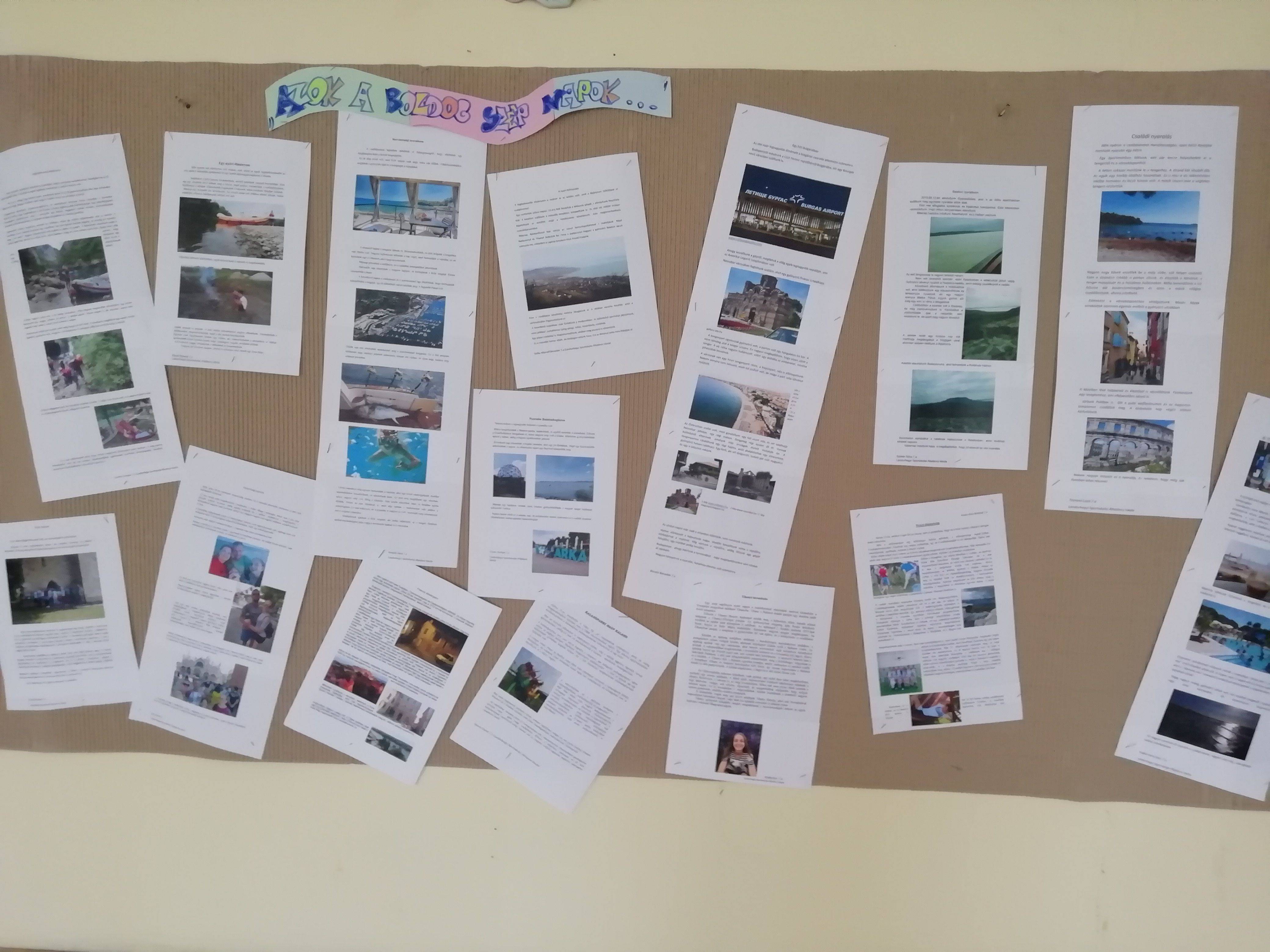 Ezt szolgálták a csoport tagjainak fotókkal illusztrált élménybeszámolói is, amiket kinyomtattunk, és emlékeztetőül termünk falára tettünk.