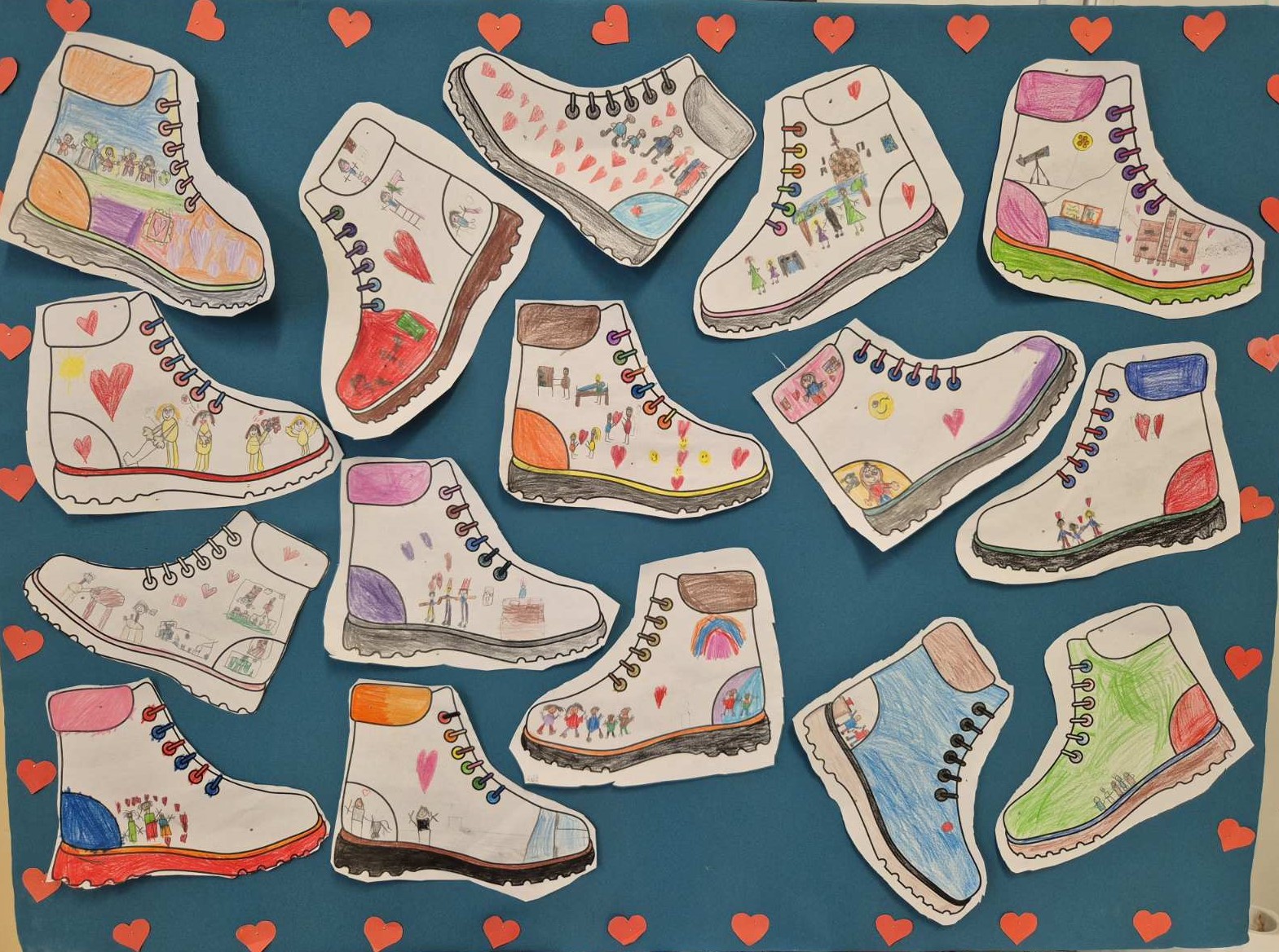 Első osztályos diákjaimmal megbeszéltük, hogy mit is jelent a félév lezárása, hol is tartunk most a tanulással, mit fogunk még megtanulni a tanév végéig. Megbeszéltük azt is, hogy januárban szokás az, hogy, ha az emberek szeretnének, akkor új terveket tűznek ki maguknak, és most ezt mi is megpróbáljuk. Másoltam nekik 1-1 „bakancsot” és beszélgettük a „bakancslista” kifejezésről egy-egy példa segítségével. A gyerekeknek nagyon tetszett, hogy egy „cipőre” rajzolhatják le az álmaikat, és kedvük szerint díszíthetik azt. 🙂