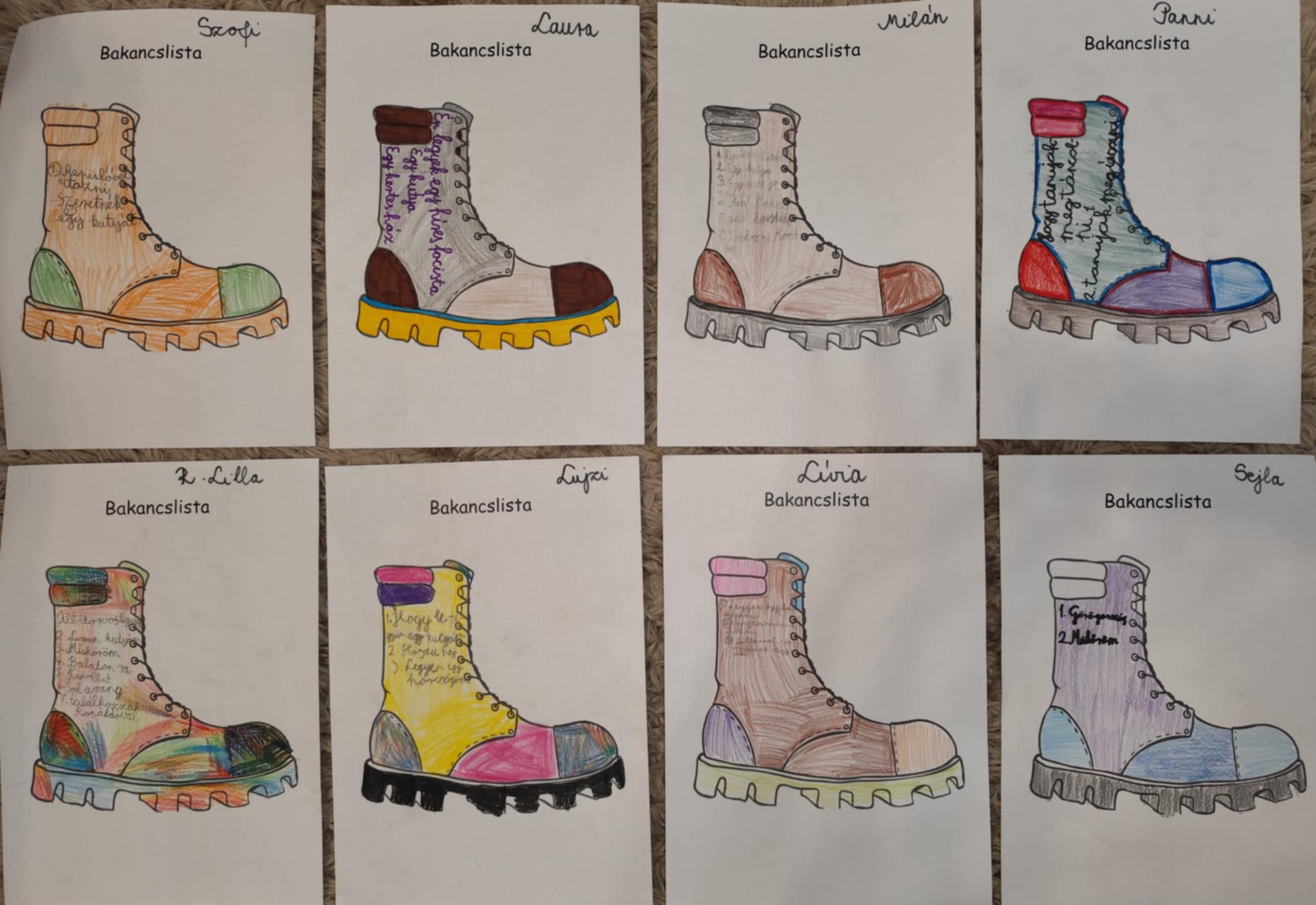 Egy irányított képzeletgyakorlat segítségével mindenki megpróbálta összegyűjteni azokat az álmait és vágyait, amelyeket élete során el szeretne érni, ahová el szeretne jutni, illetve amelyeket meg szeretne valósítani. Ezt követően mindenki elkészítette saját bakancslistáját, amely rendkívül változatos lett.
