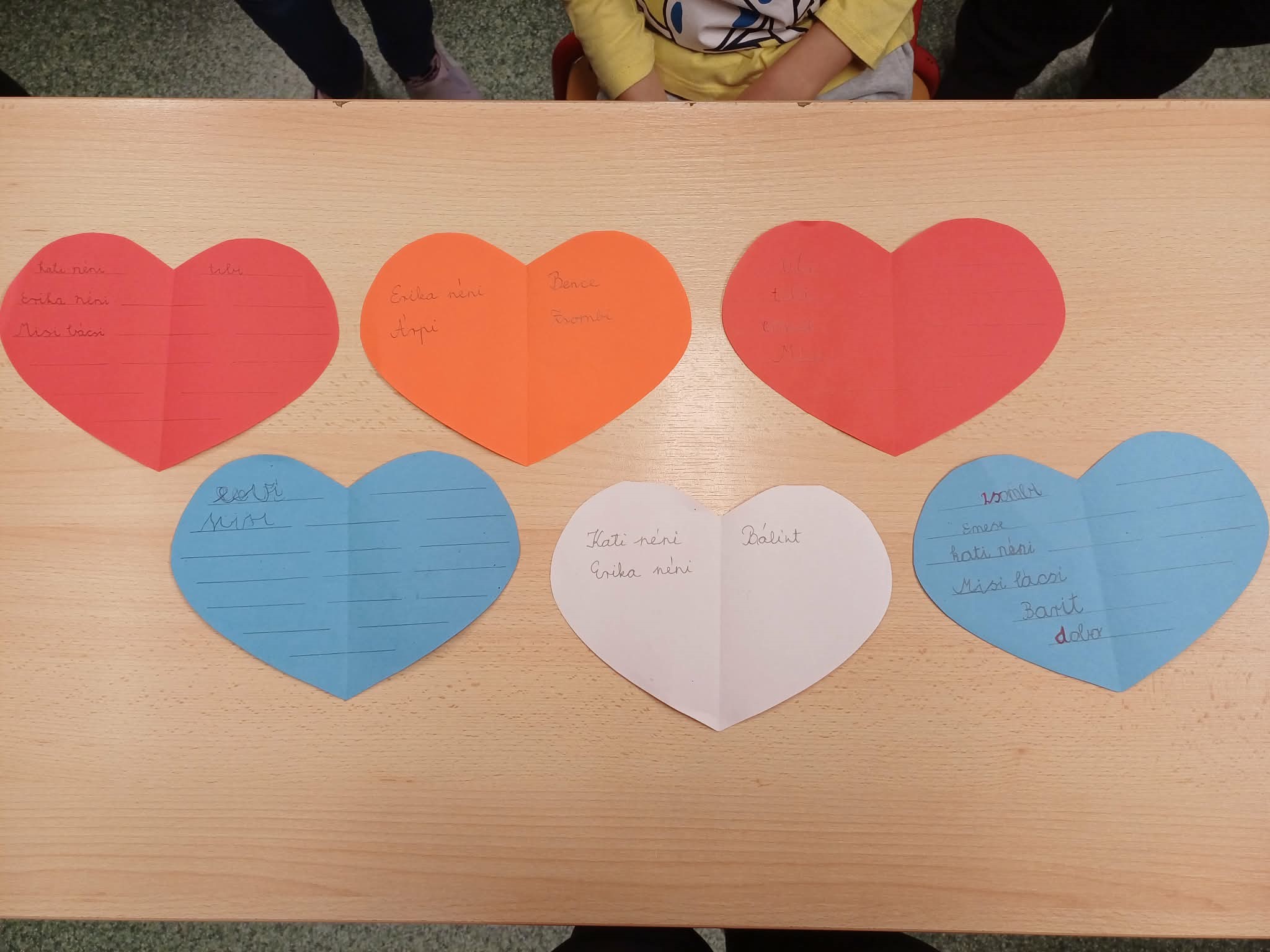 Minden gyermek kapott egy szívet, s arra kellett gyűjteniük, hogy kinek, mit segítettek, milyen jó cselekedetet hajtottak végre.