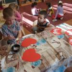 Boldogság Dóra megérkezésével elénekeltük a hónap dalát \” Ha boldog vagy, mutasd meg mindenkinek\” amire együtt táncoltunk, mozogtunk. Ezt kövezően beszélgetőkörben a \” Kis barátom, hogy vagy?\” beszédfejlesztő játékot játszottuk, ami a csoport egyik kedvence is lett. Mivel a héten a testrészeink volt a témánk, ezért elmeséltem a \”Mese a kicsi kézről\” című mesét ami az összefogásról, társas kapcsolatokról és a segítségnyújtásról szólt. A kicsik is elmesélték, hogy ők az oviban kivel szeretnek játszani és miért. Majd két, három fős csoportokat alkotva eljátszottuk a \”Csip, csip csóka\” népi játékot, amit a \”Hála játék\”-kal folytattuk, de most a testrészeinknek kellett köszönetet mondaniuk egy- egy cselekmény végrehajtásáért. A foglalkozás végén barátságszíveket készítettünk tenyérlenyomattal, közben újra meghallgattuk Bagdi Bella: Ha boldog vagy, mutasd meg mindenkinek dalát. Az udvaron folytattuk a közös játékot, örültünk a sok szép lehullott őszi levélnek és a szép időjárásnak.