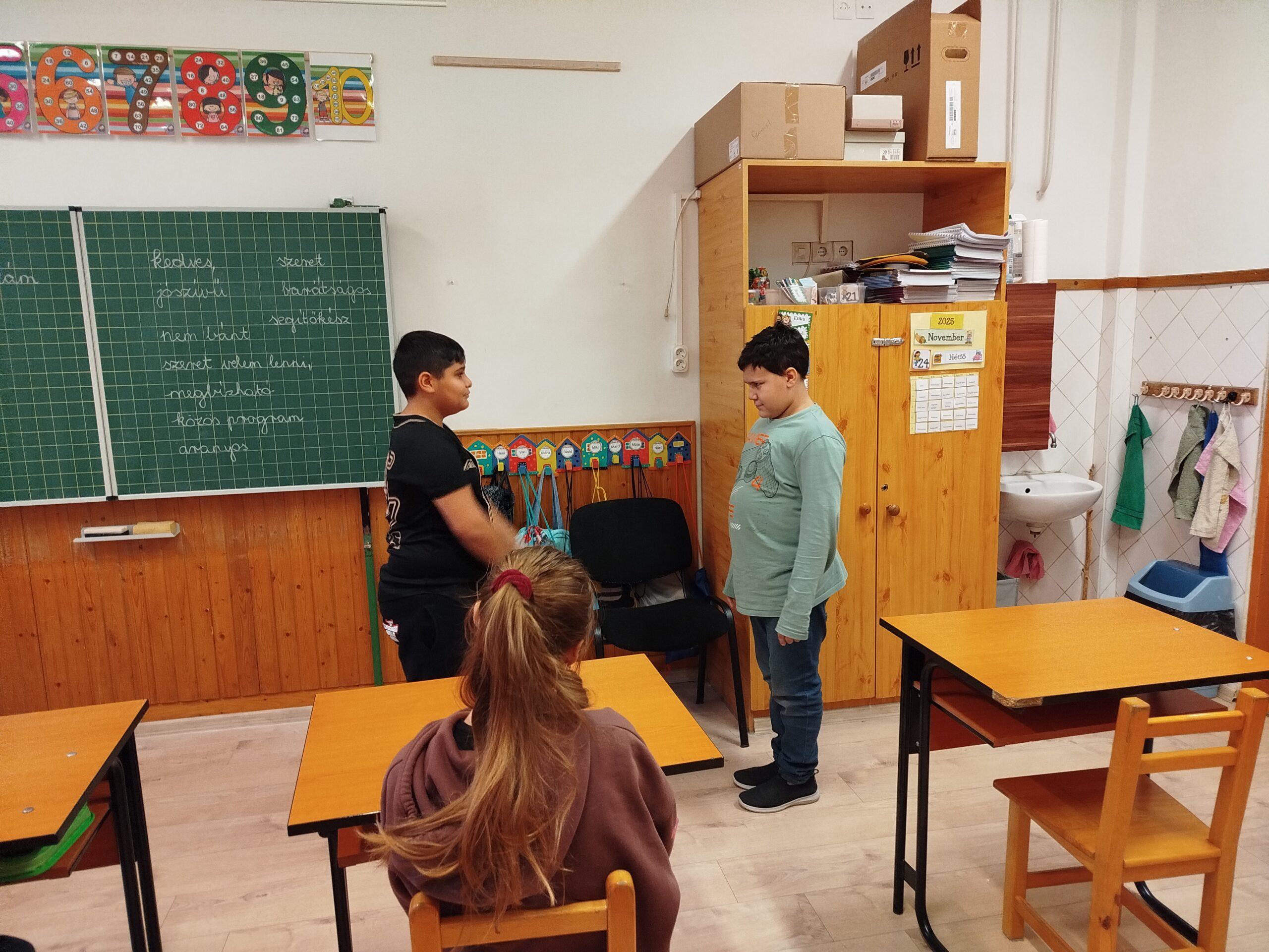 A szoborpark játék nagyon tetszett a nekik, hamar kitalálták a tanulók, hogy mit ábrázolnak a páros szobrok. Nagyon ötletesek voltak egy-egy érzelem kifejezésében, bemutatásában.