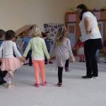 Az adott téma kapcsán a „Szervusz, kedves barátom” kezdetű népi játékkal köszöntöttük egymást a beszélgetőkörben. A tevékenységi sarkokban pedig azt gyakoroltuk, hogy a barátok segítik, megajándékozzák egymást, gondoskodnak egymásról. A mértani formákról tapasztalatot szerezve együtt állták ki a próbákat, így bejuthattak a Barátság birodalmába. Itt együtt eljártuk a barátságtáncot megkoronázva ezzel a barátság napját.