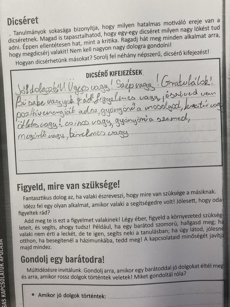 Az osztályközösségben a barátságok fontosak, erősítik egymás személyiségét. Koruknál fogva, leginkább a külsőségekre helyezik a hangsúlyt. Motiválja őket a környezetük dicsérete.